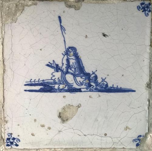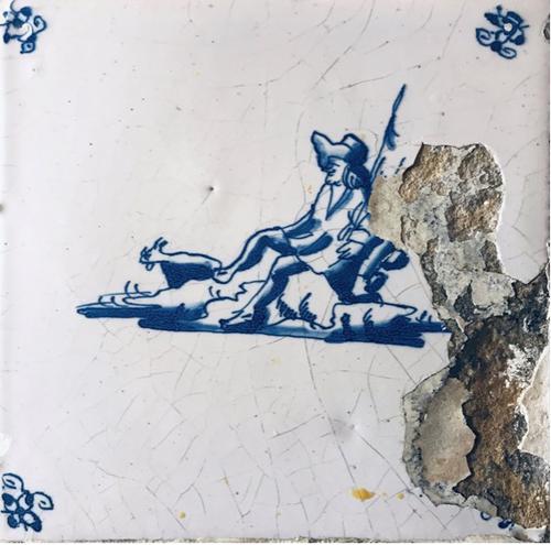 Tegel van aardewerk met tinglazuur voorstellende her...
