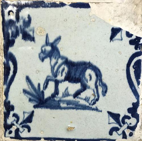 Tegel van aardewerk met tinglazuur voorstellende eze...