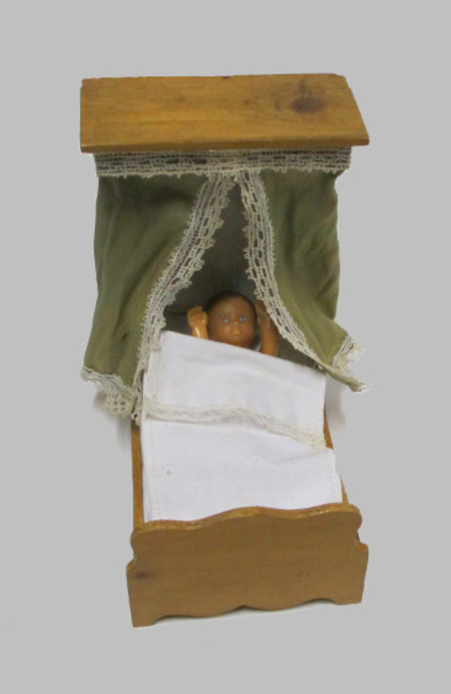 Mahoniehouten miniatuur babyledikantje, met opengewe...