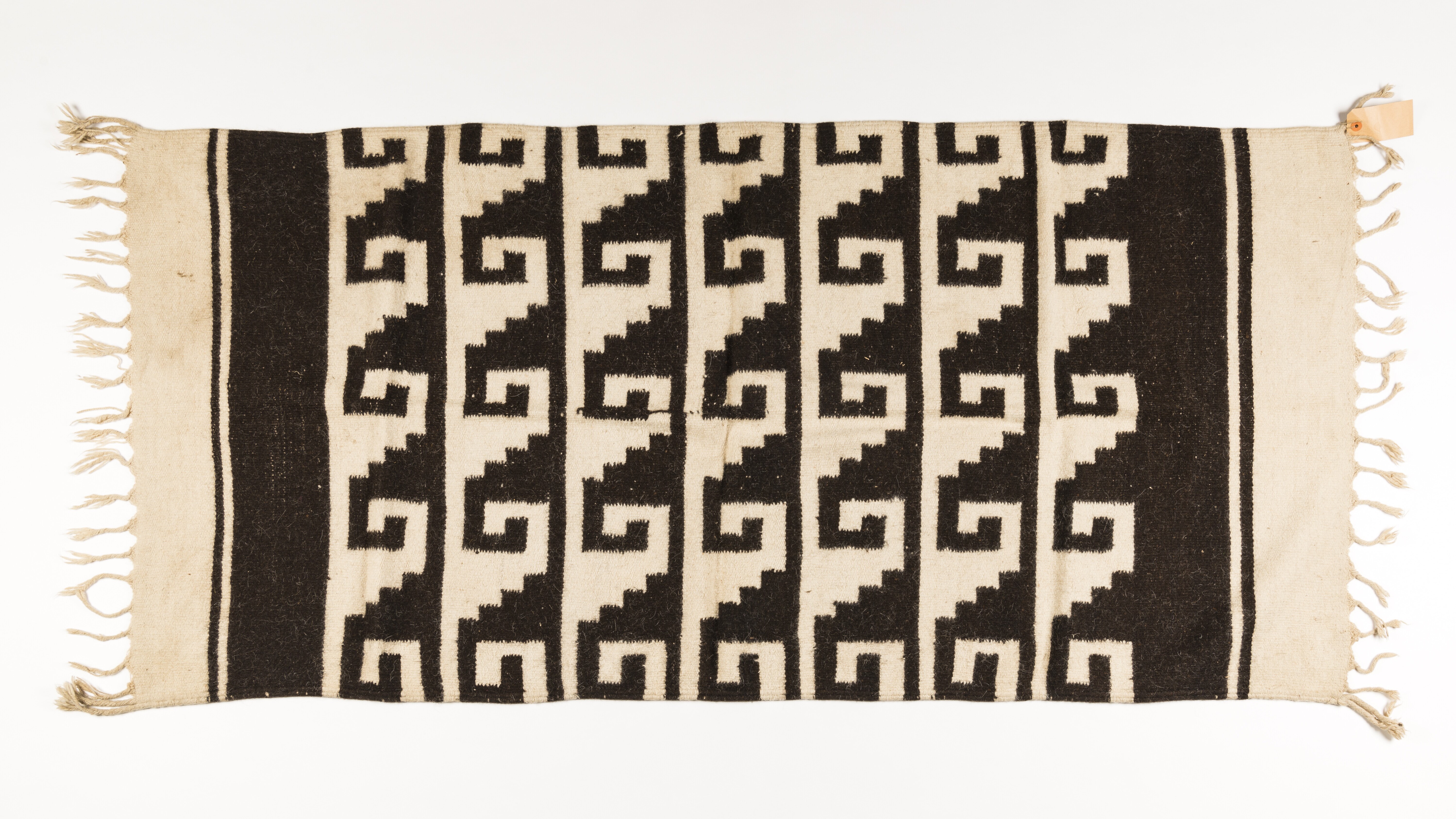 Veelkleurige wollen deken met ruitvormig ornament in...