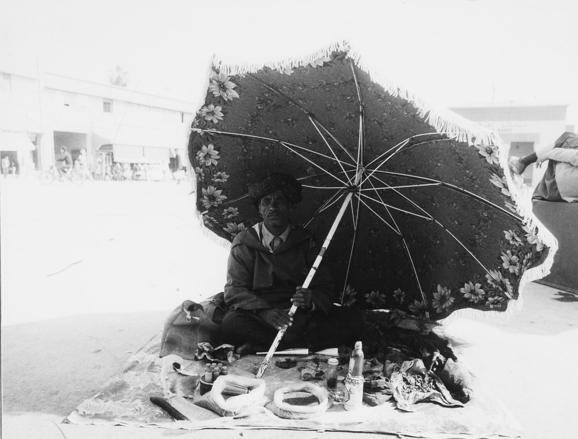 Tapijtverkopers doen een spelletje.Omgeving van de g...