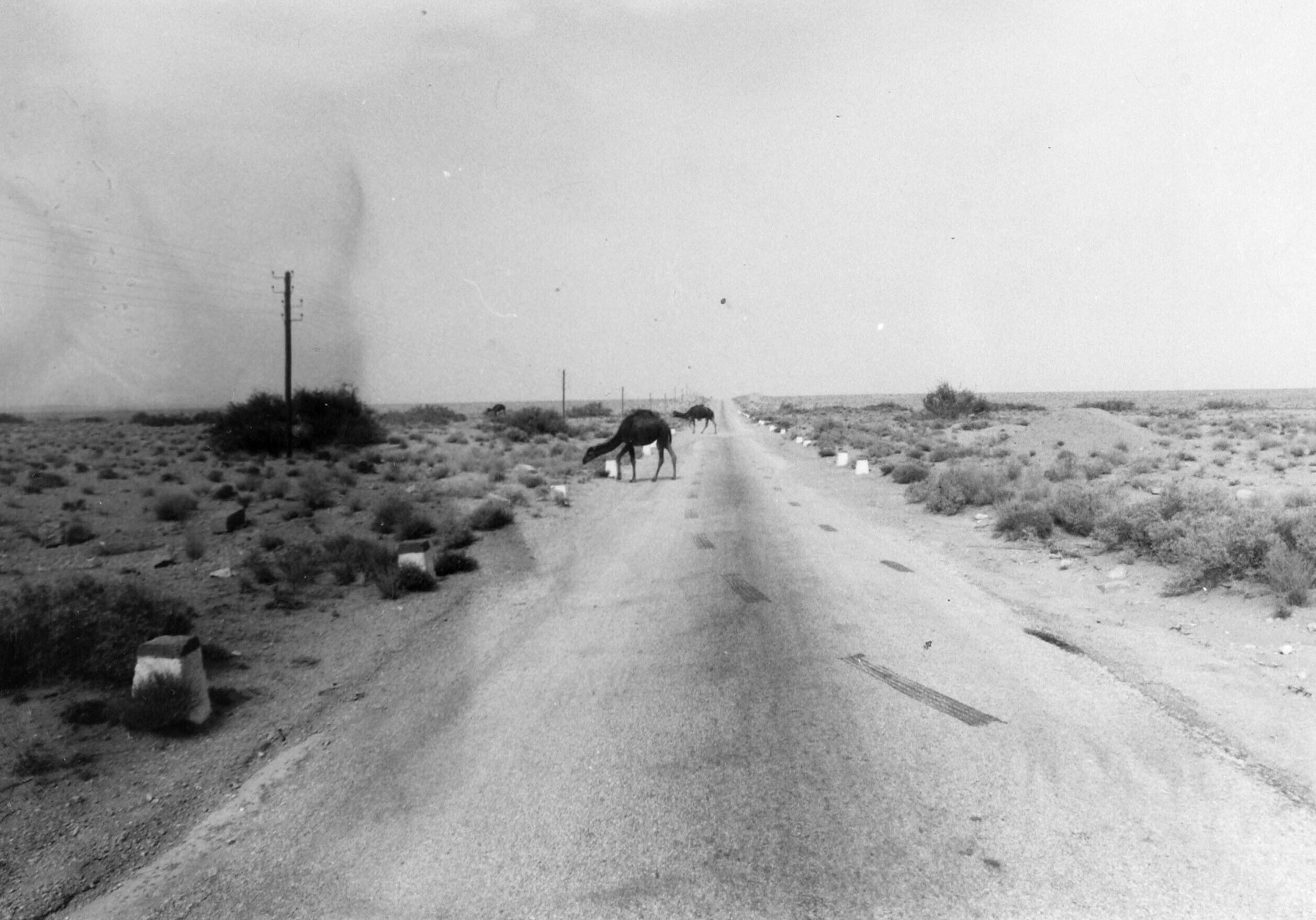 Dromedaris aan de kant van de weg van Er-Rachida en ...