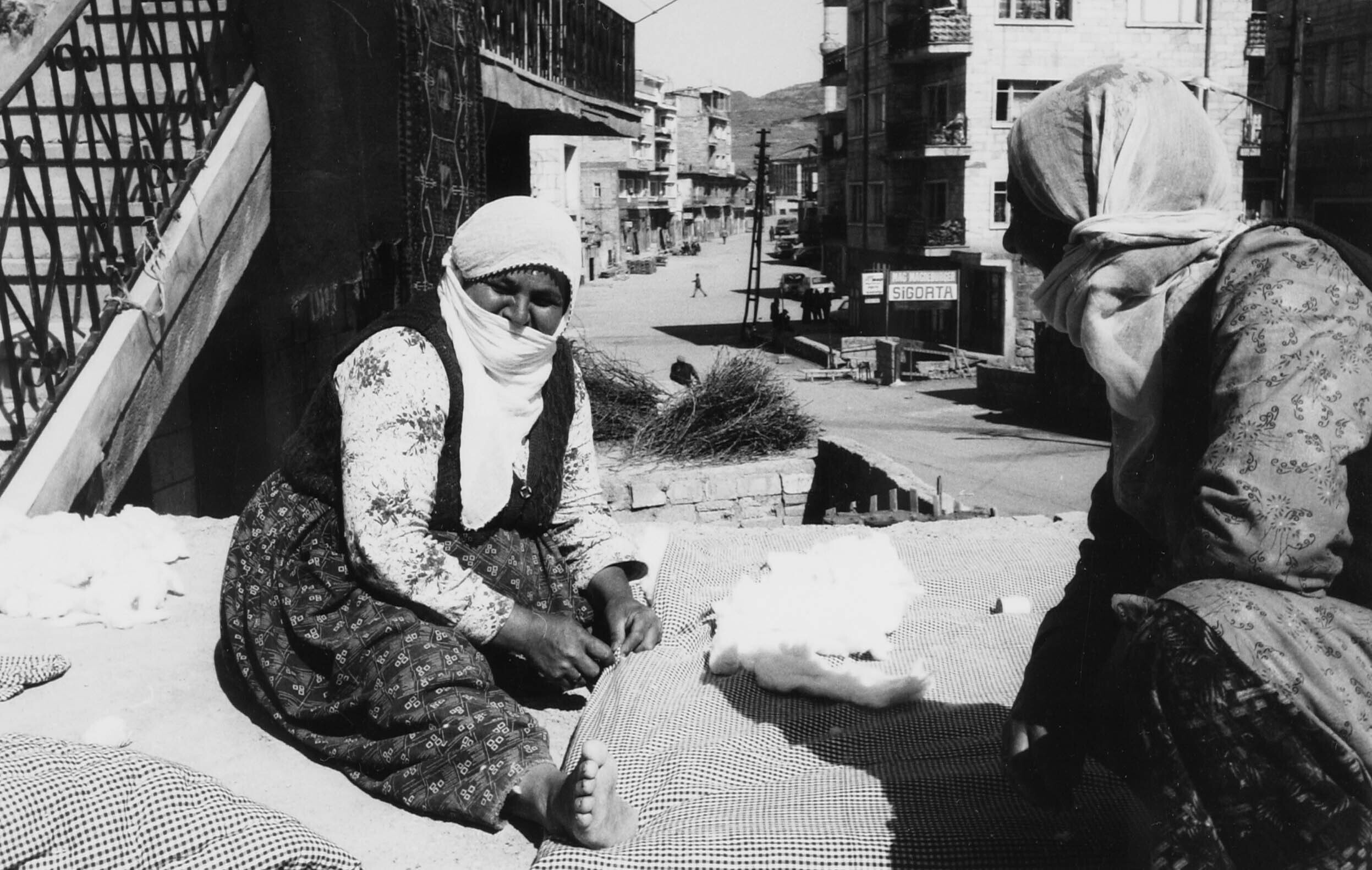 Vrouwen vullen 'Yorgans (=met schapenwol gevulde en ...