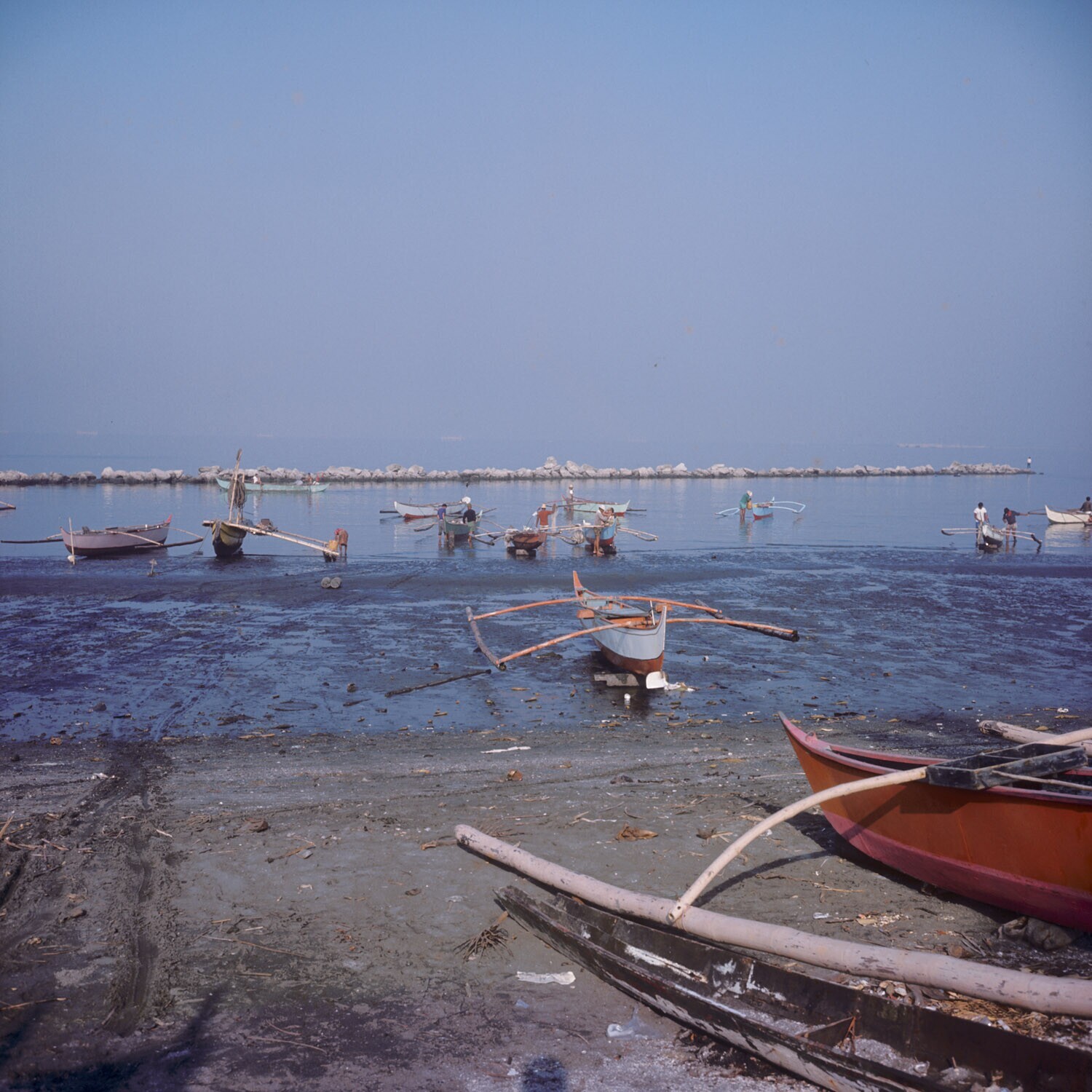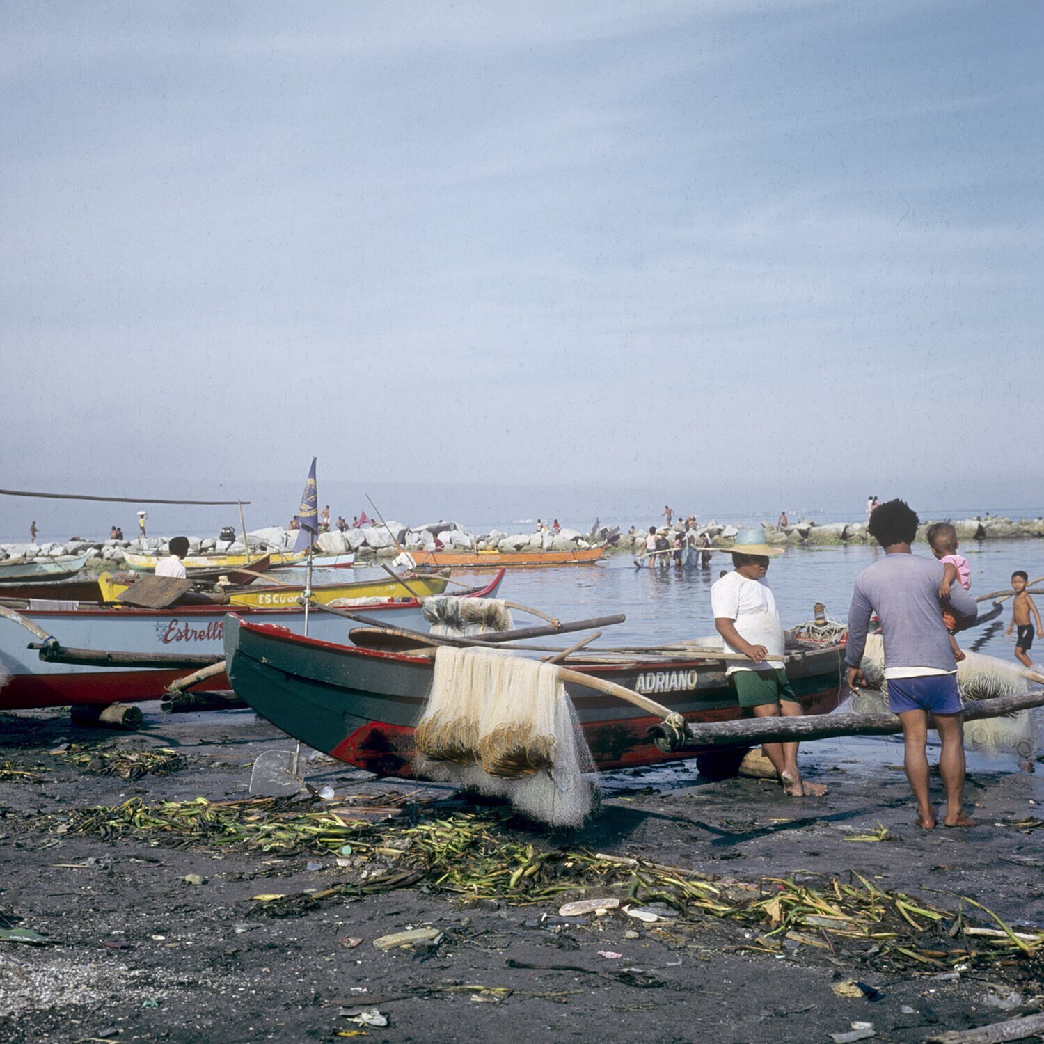 Vissers en hun schepen bij de Roxas boulevard, Manil...