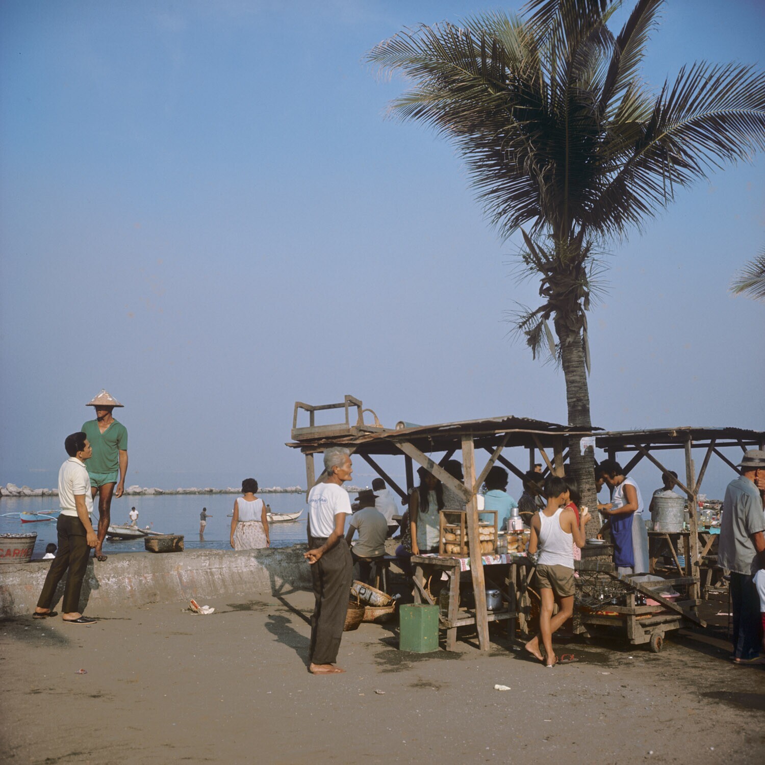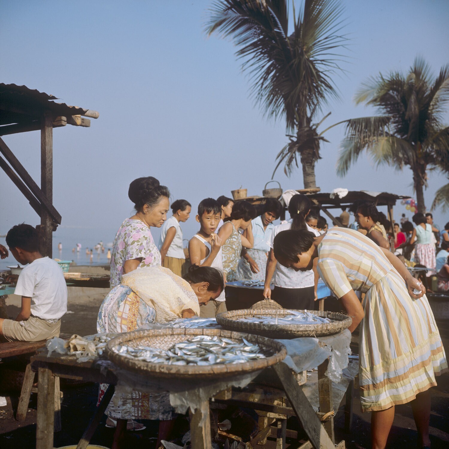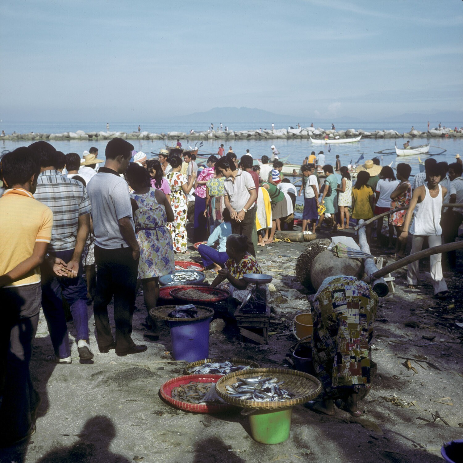 Verkoop van vis bij de 'vissershaven' aan de Roxas b...