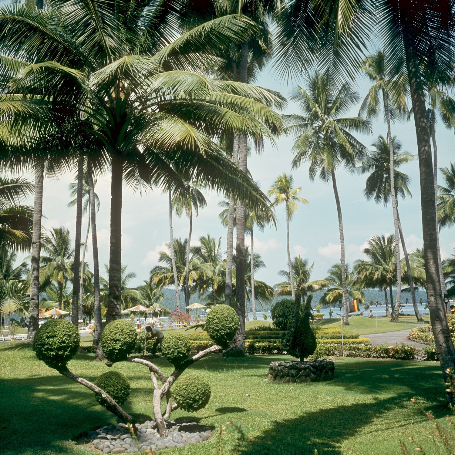 Tot hoteltuin aangelegde klapperaanplant, Davao Insu...