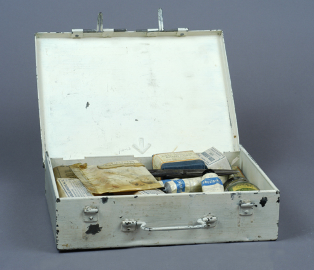 plaatijzeren verbanddoos met scharnierend deksel en ...