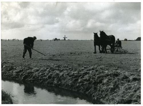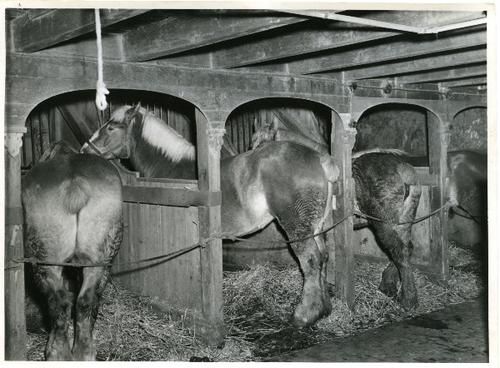 Foto in zwart-wit van paarden op stal door J.D. de J...