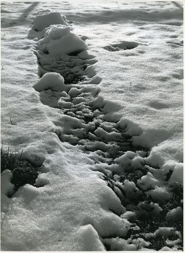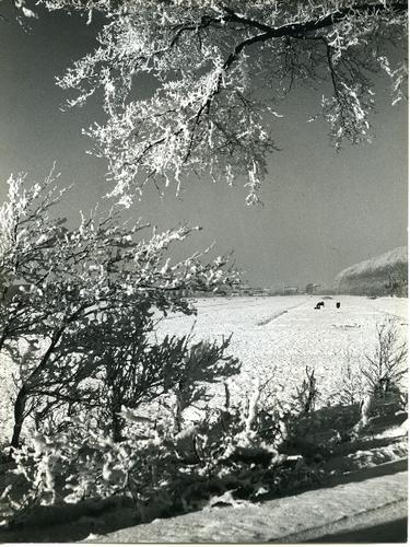 Foto in zwart-wit van besneeuwd grasland door J.D. d...