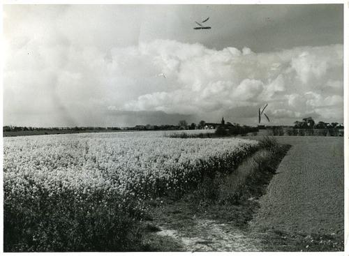 Foto in zwart-wit van een koolzaadveld door J.D. de ...