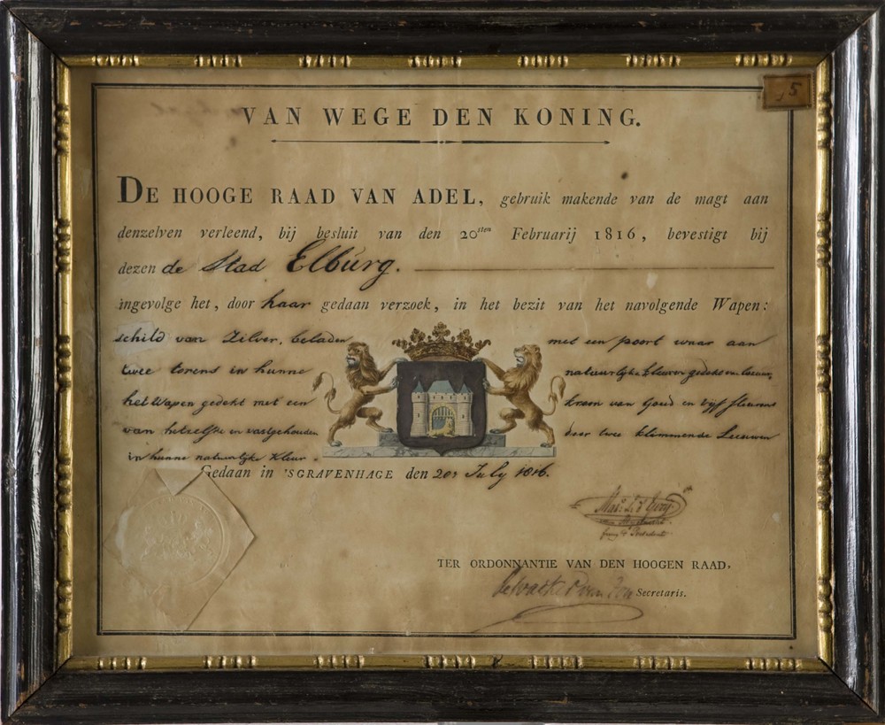 oorkonde, uitgegeven door De Hooge Raad van Adel, wa...