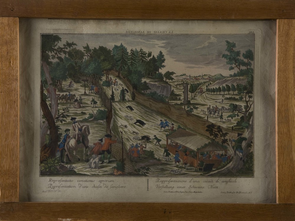 Gravure no. 32, voorstellende varkensjacht, vervaard...