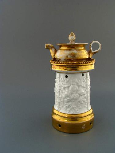 Theebus van wit porselein met decoratie