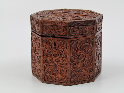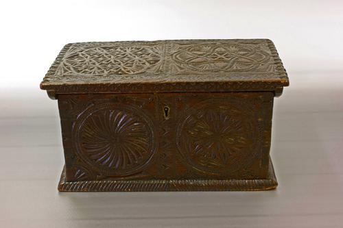 Eikenhouten kerfsnede theekist, Friesland 18e eeuw