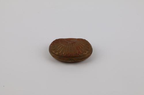 Messing tabaksdoos in de vorm van een schelp