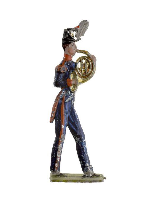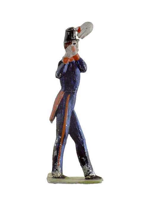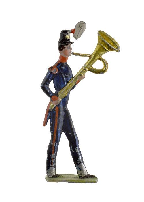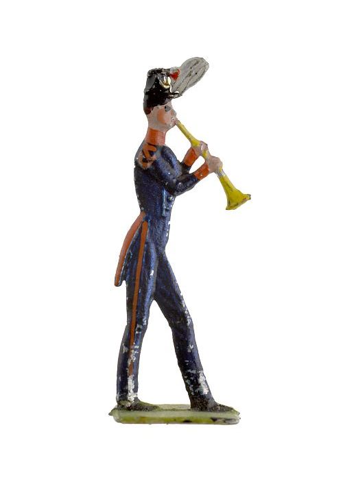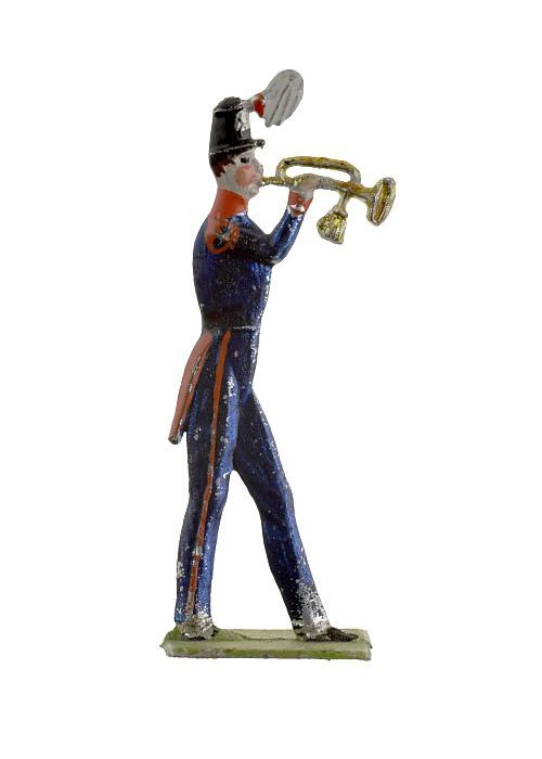 Tinnen figuren in de vorm van Zwitserse trompettiste...