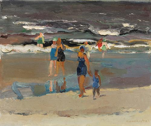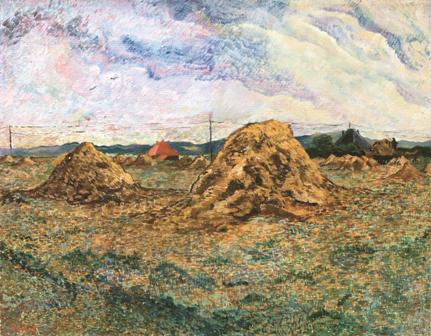 Landschap met hooioppers bij duinen