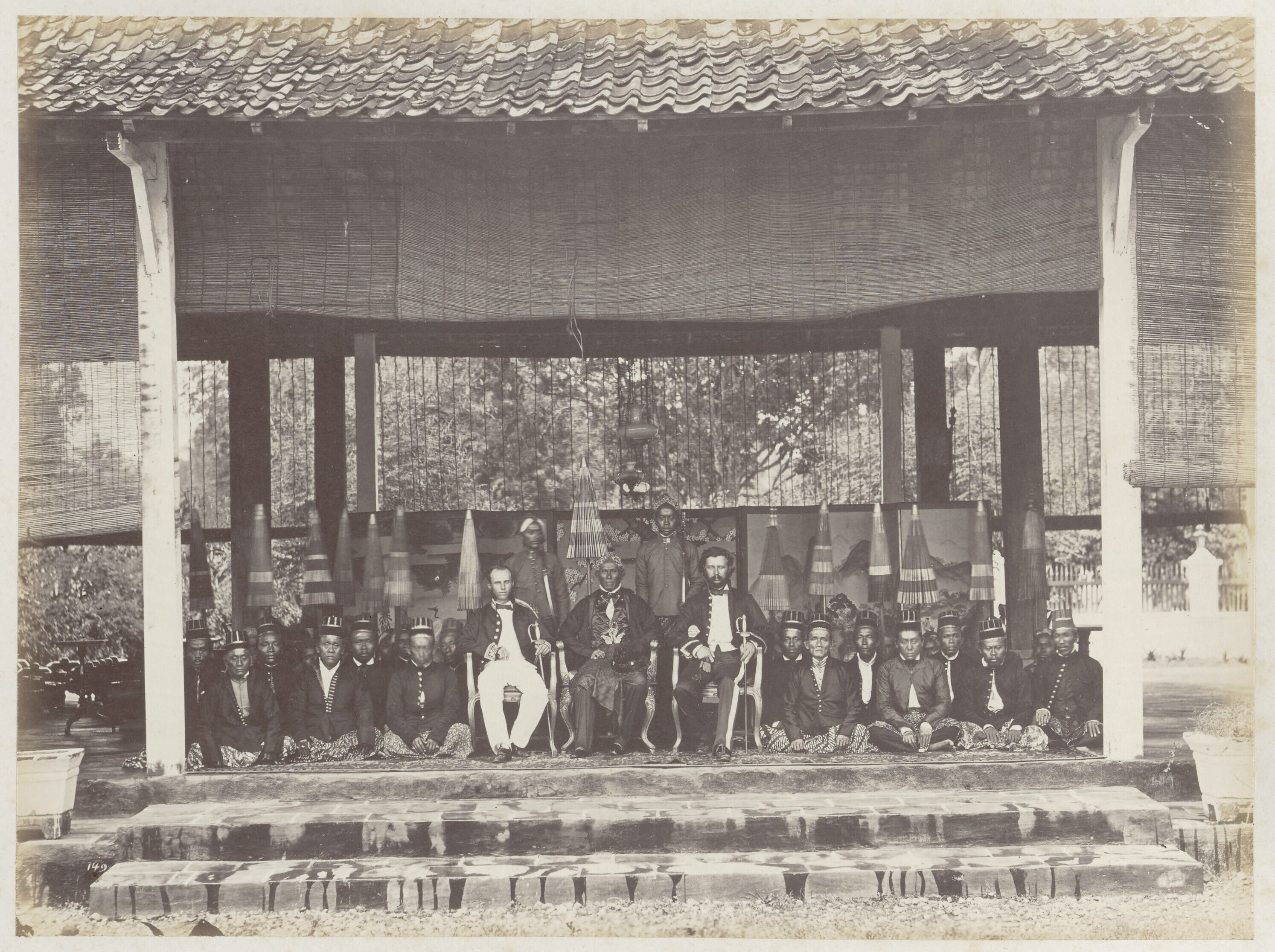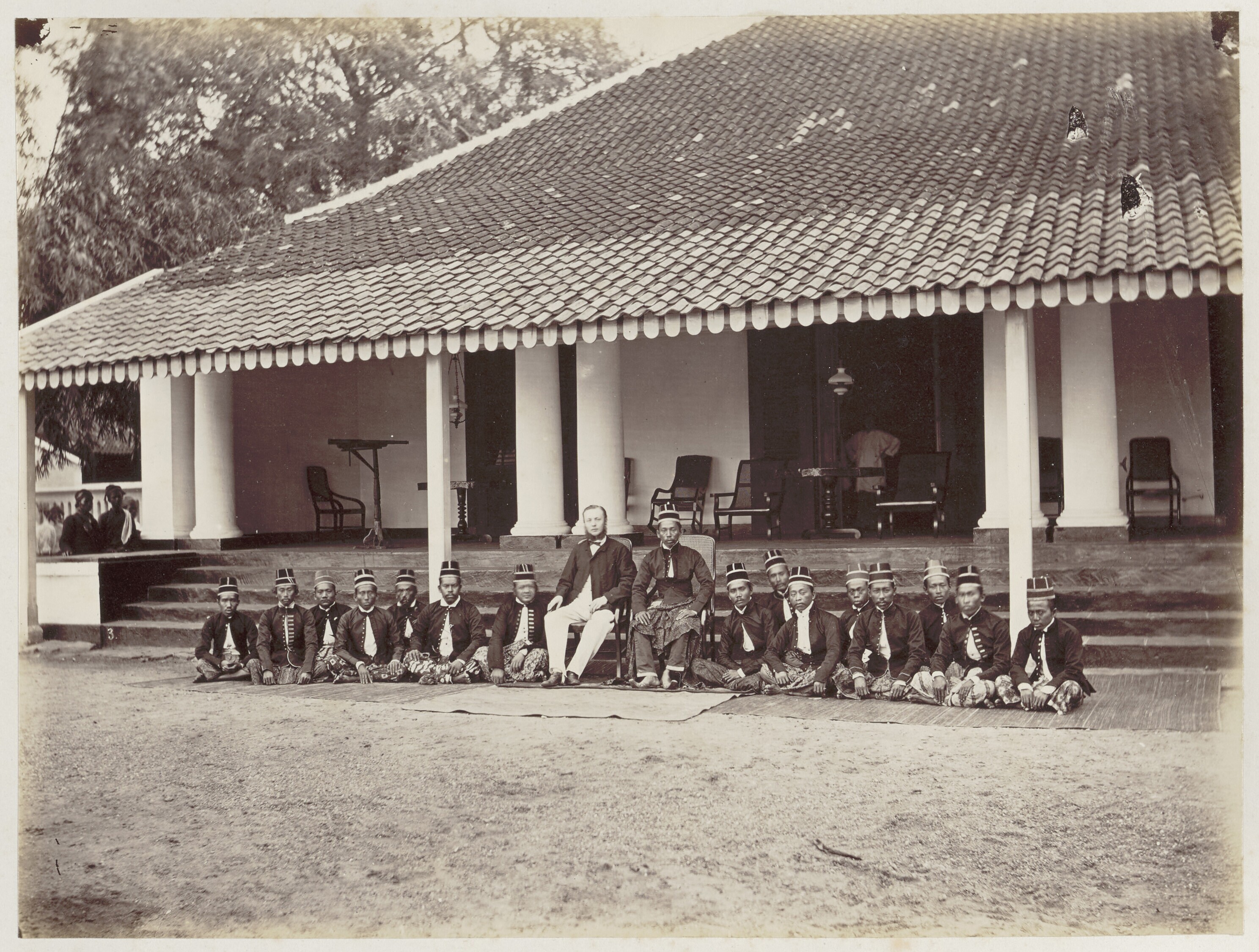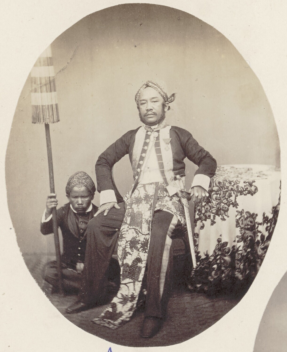 Portret van een Javaanse vorst of notabele met twee ...