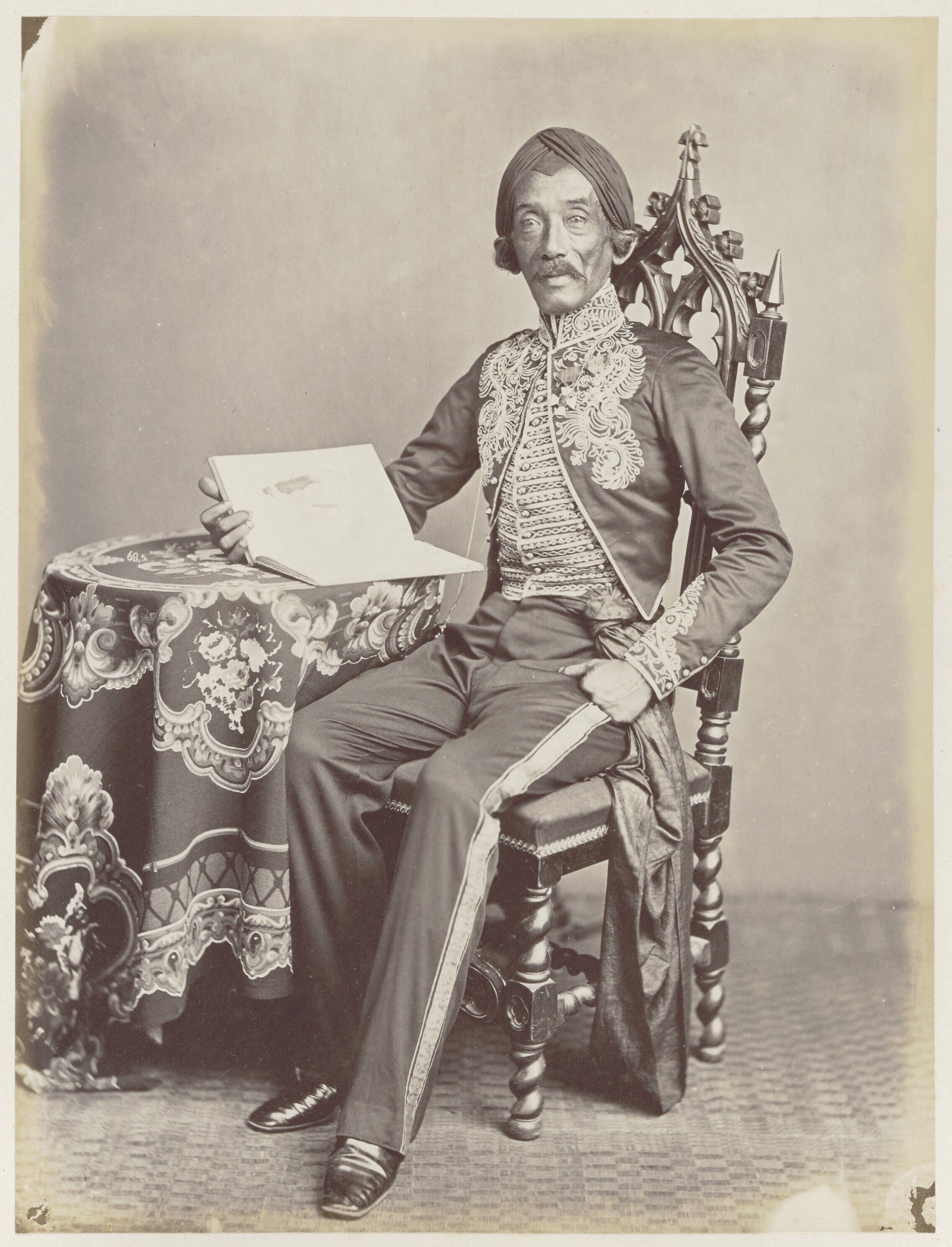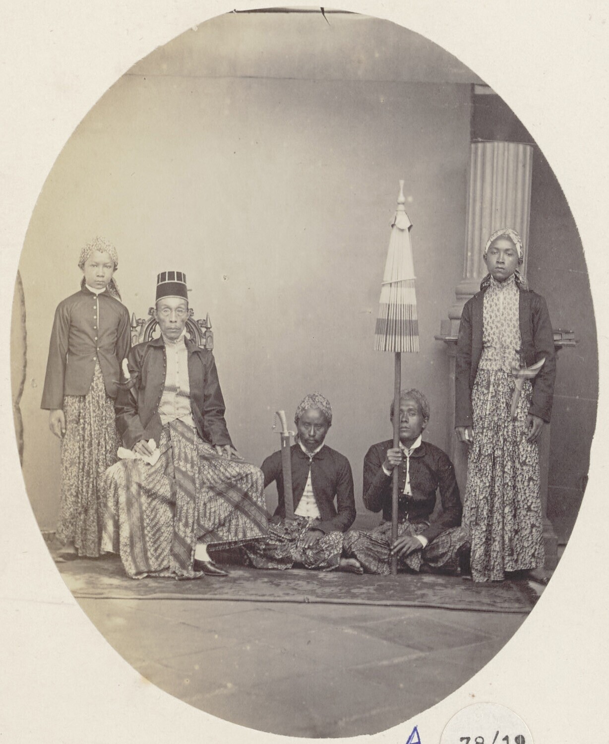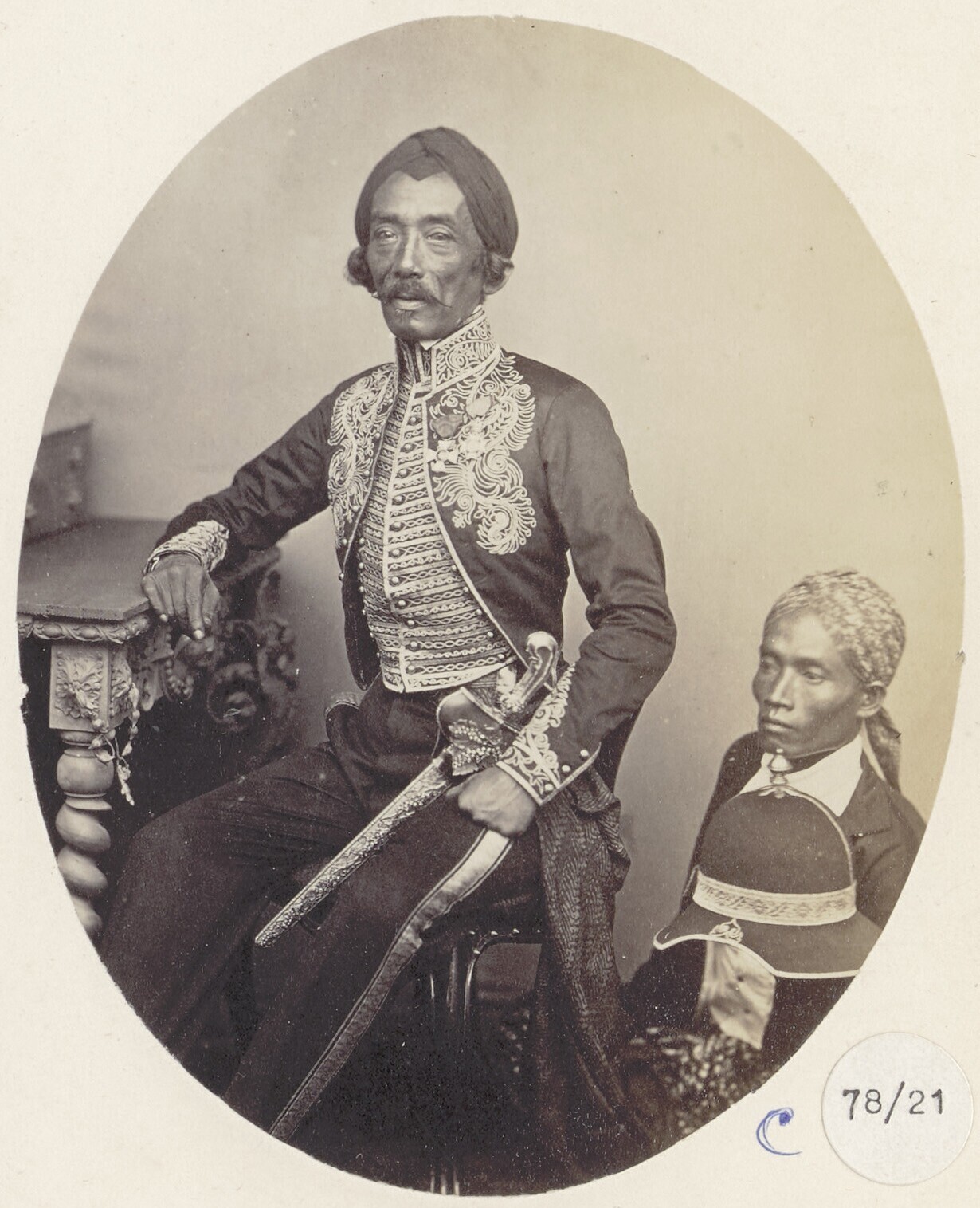 Portret van een Javaanse vorst of notabele met twee ...