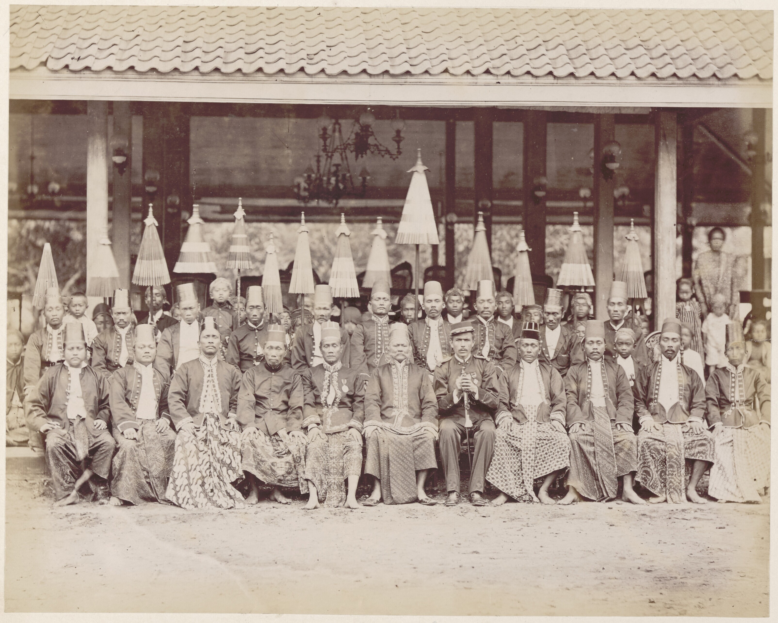 Groepsportret met Javaanse lokale bestuurders en een...
