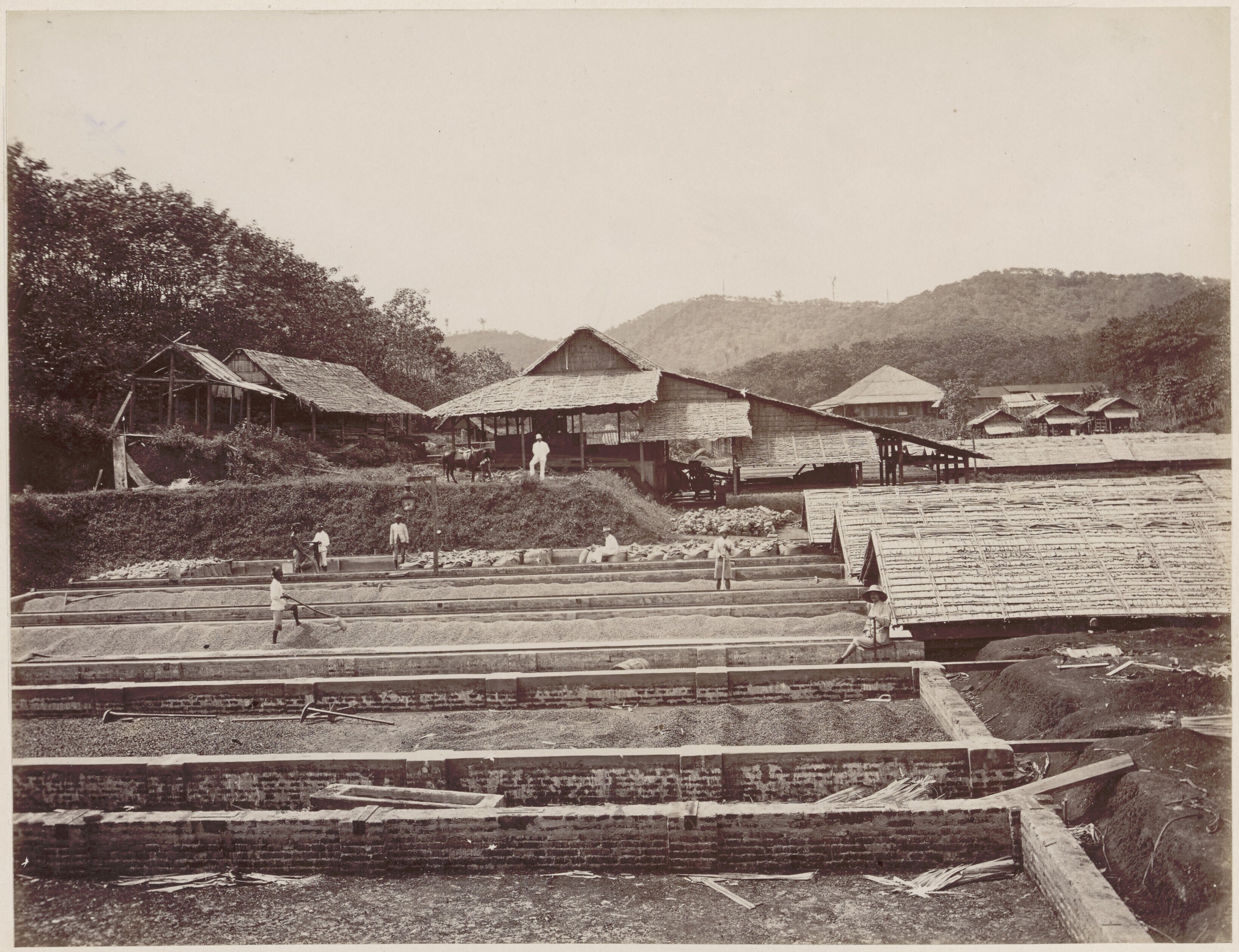 Droogplaats voor koffiebonen op een onderneming