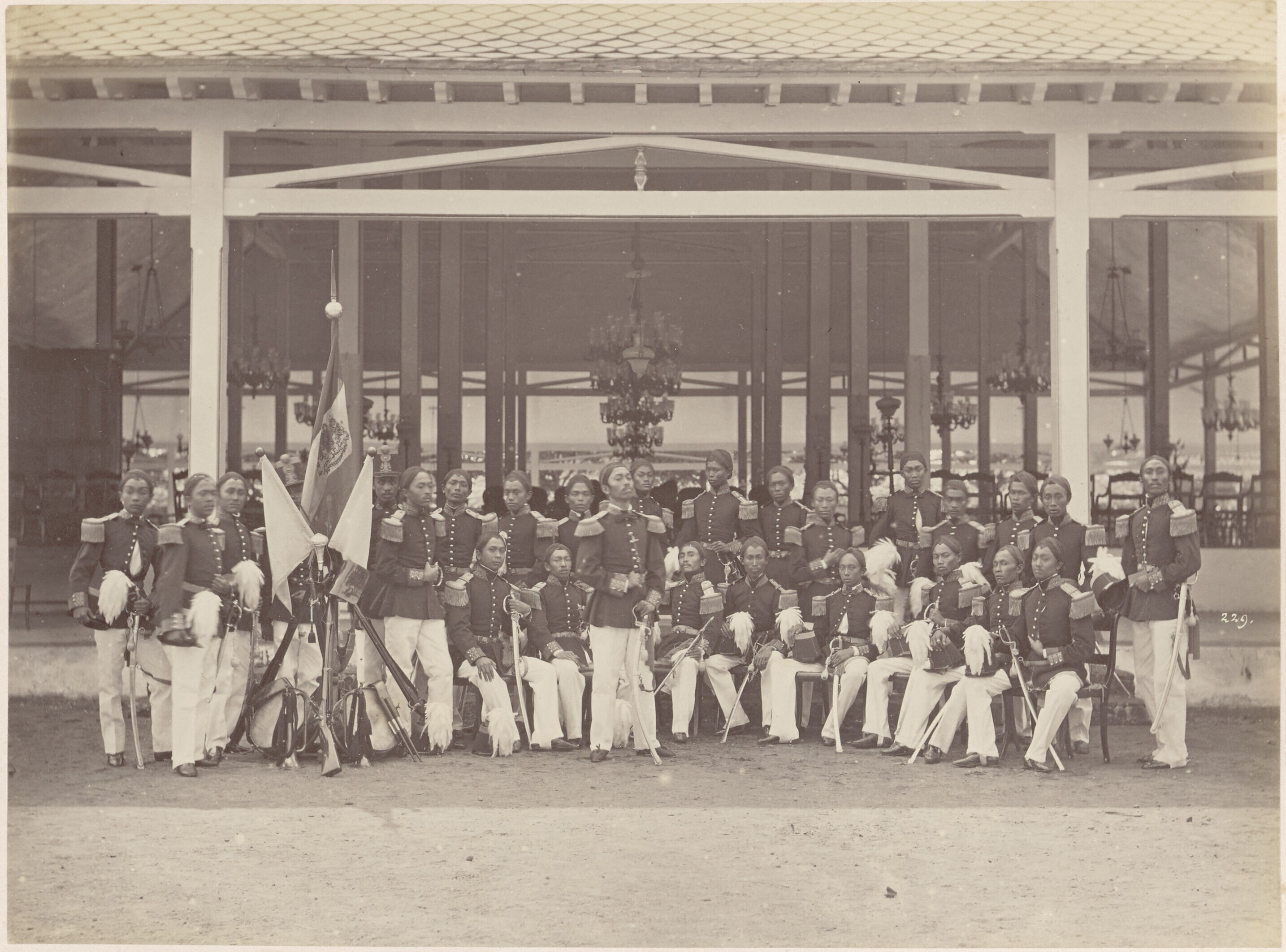 Prins Mangkoe Negoro tussen officieren van het legio...