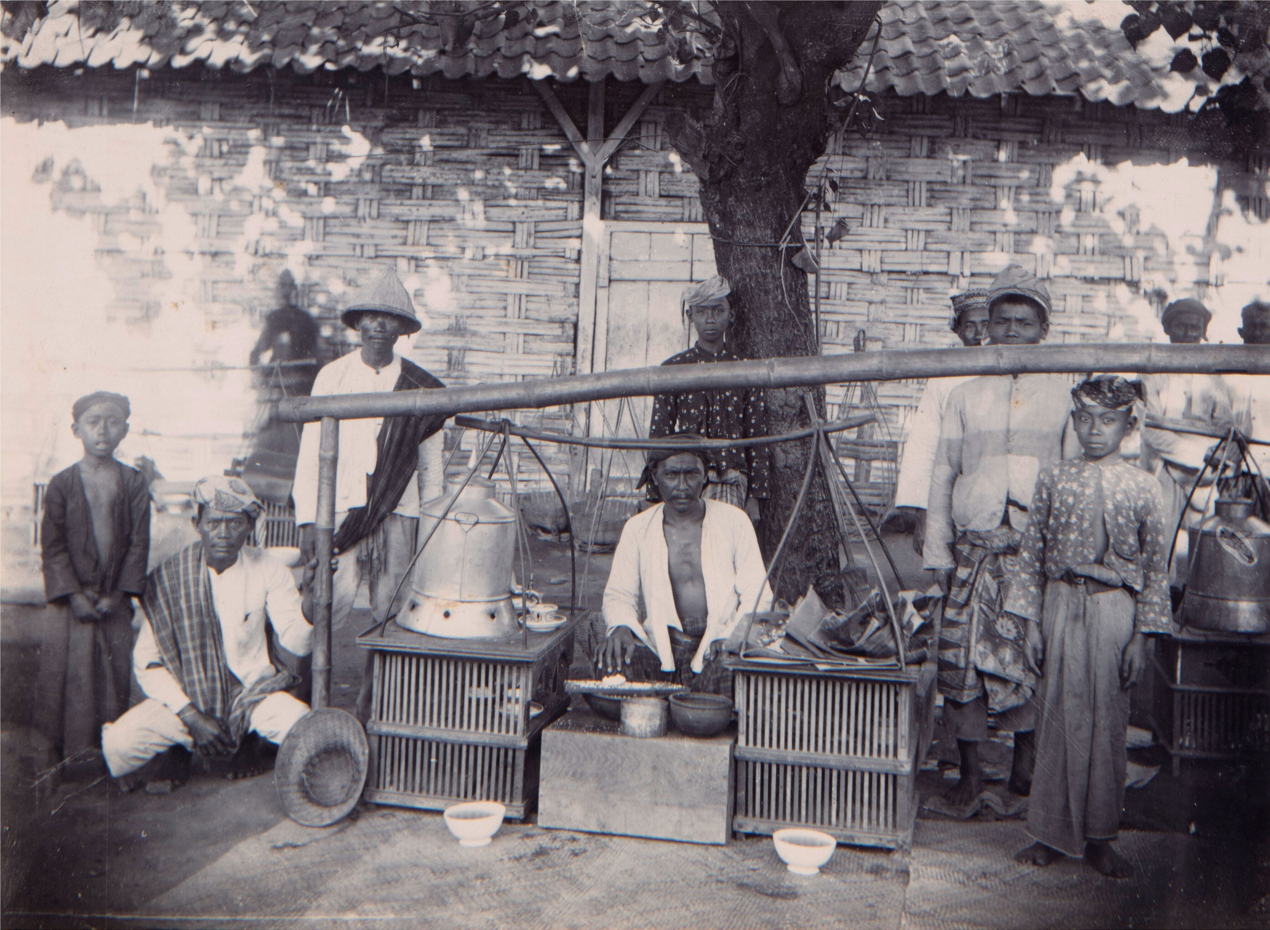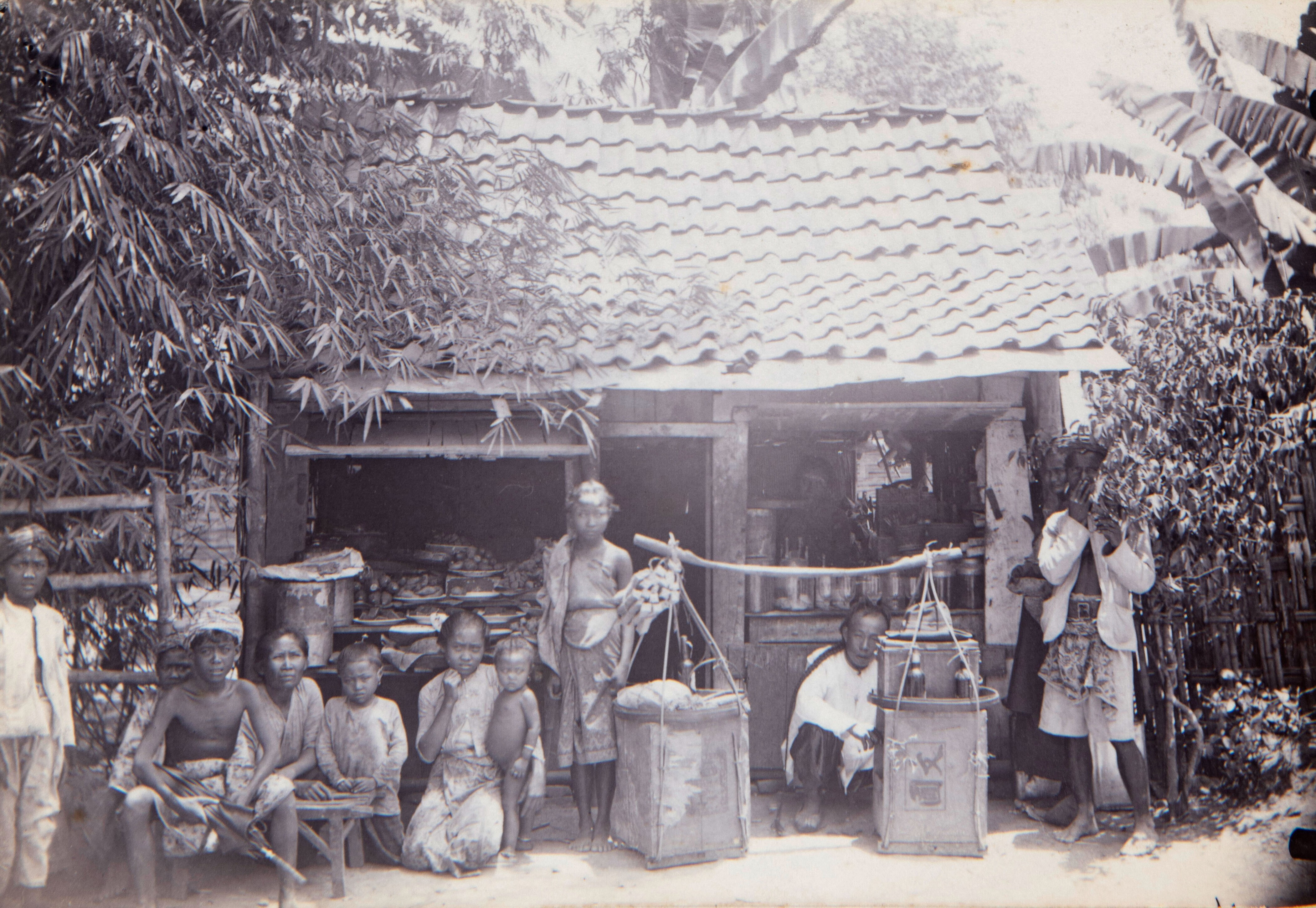 Groepsportret voor een warung