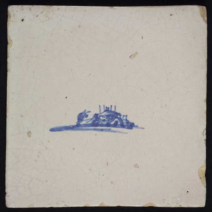 Tafereeltegel, blauw, boerderij met hooimijt, geen h...