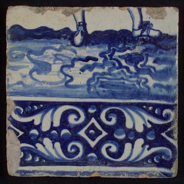 Tegel van tableau met in blauw voeten en gedecoreerd...