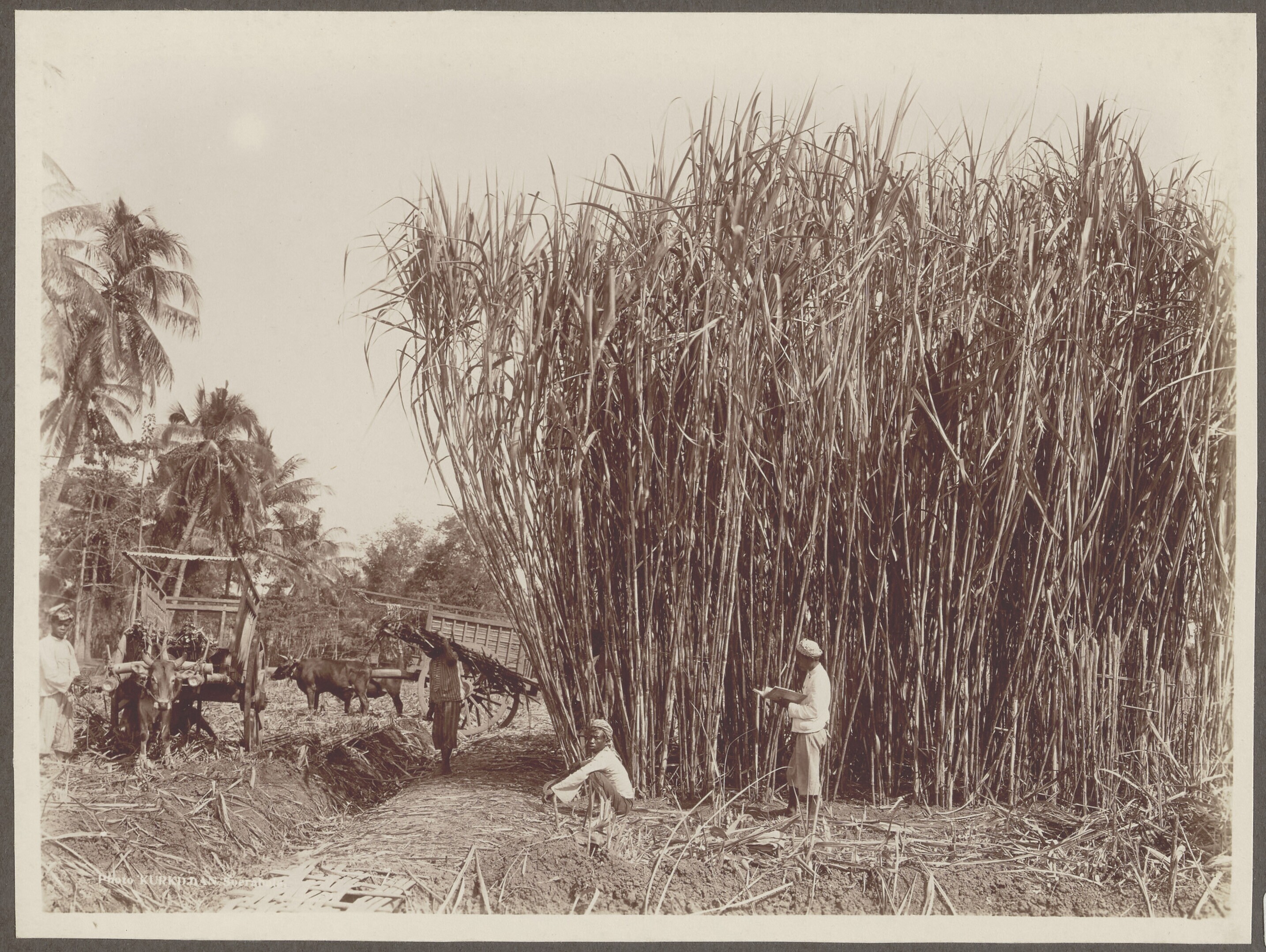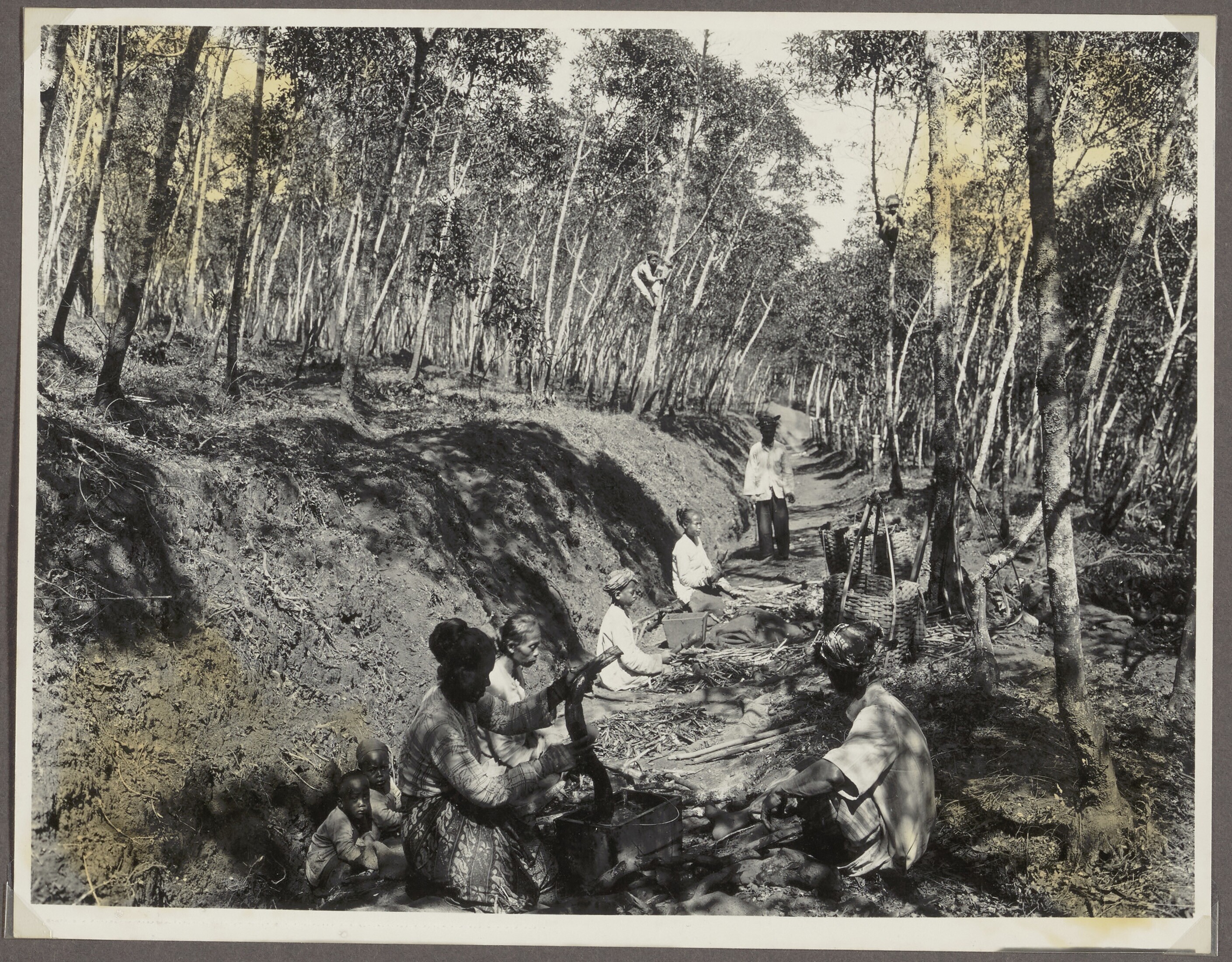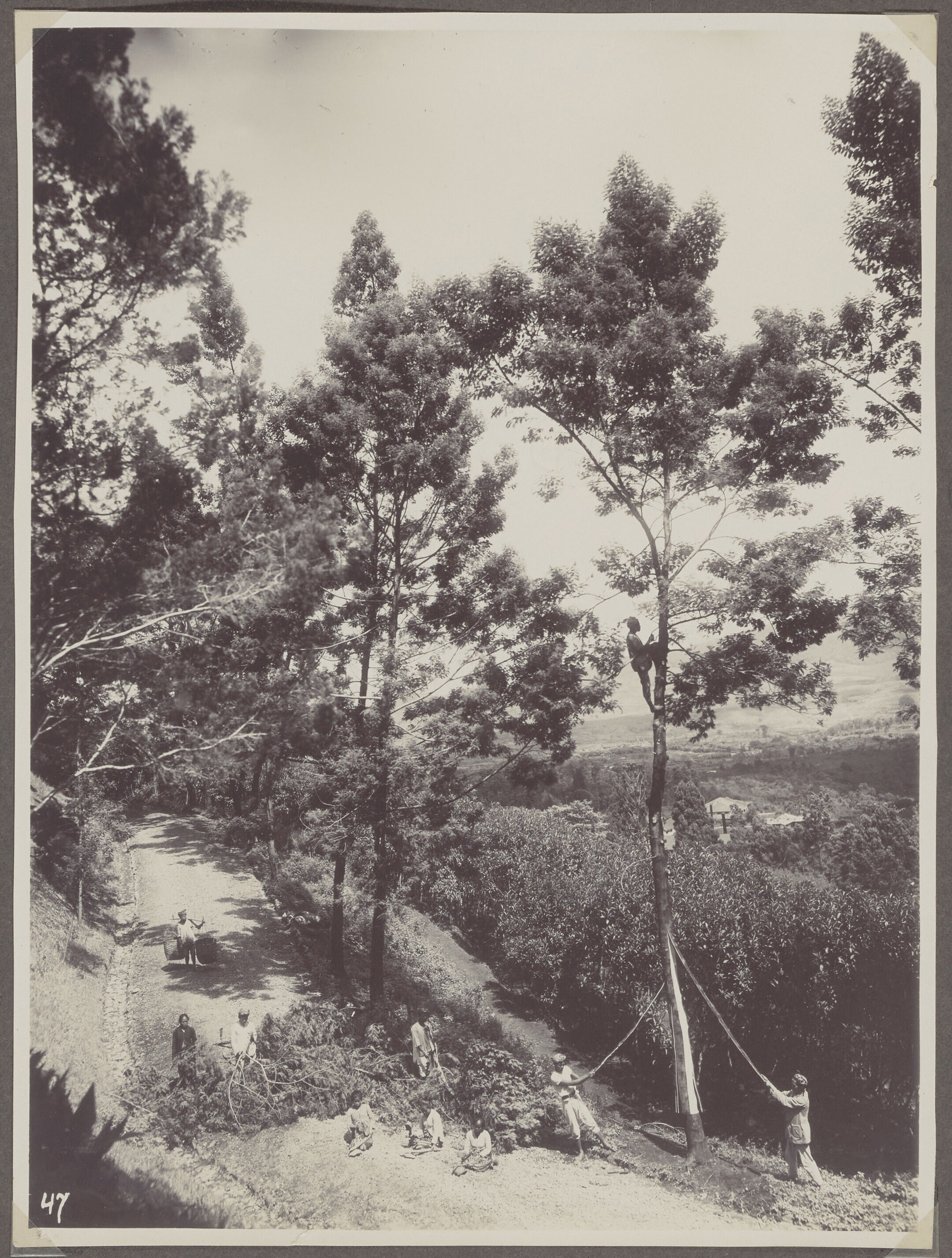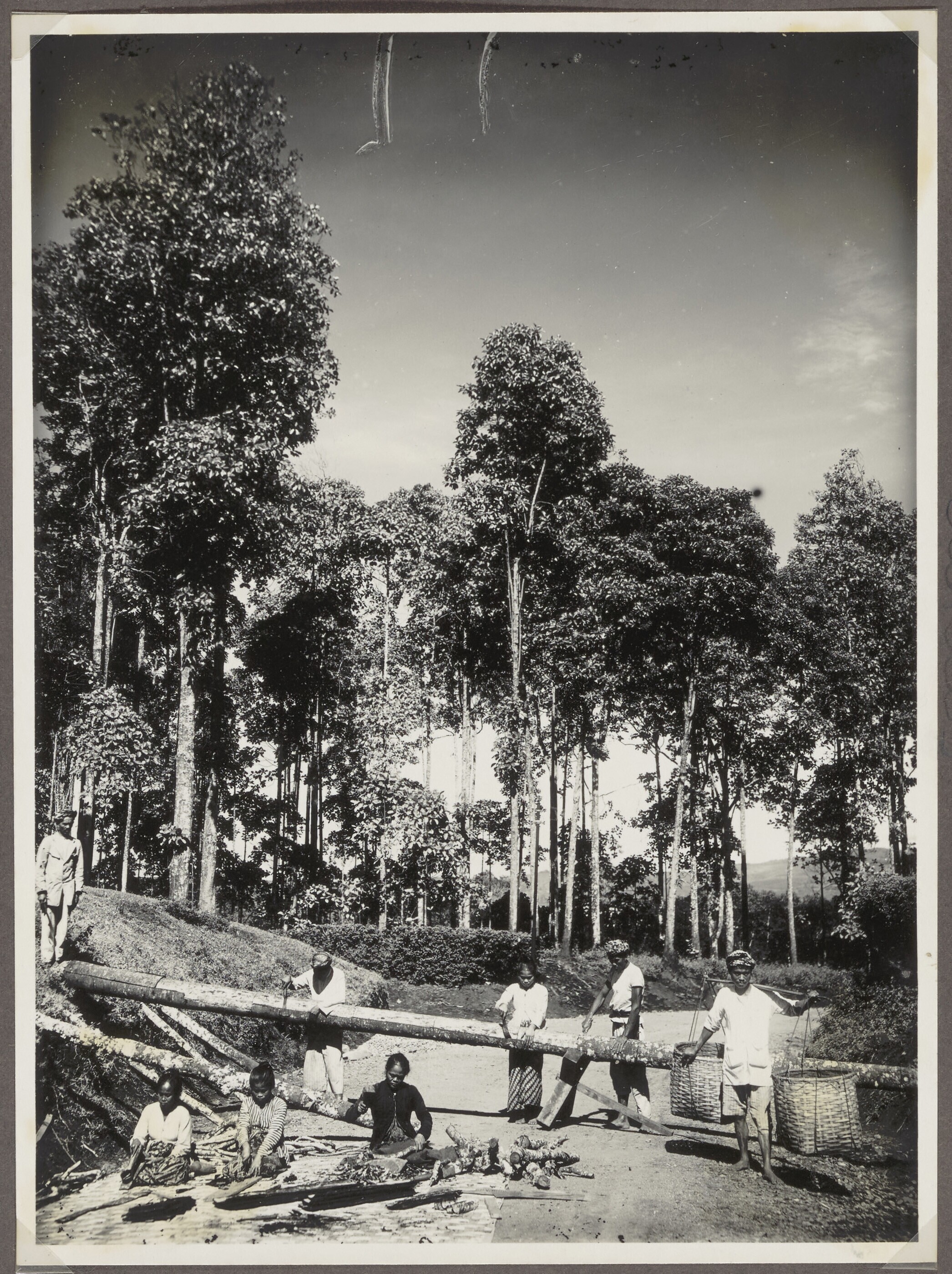 Het oogsten van kina (Cinchona ledgeriana) op planta...