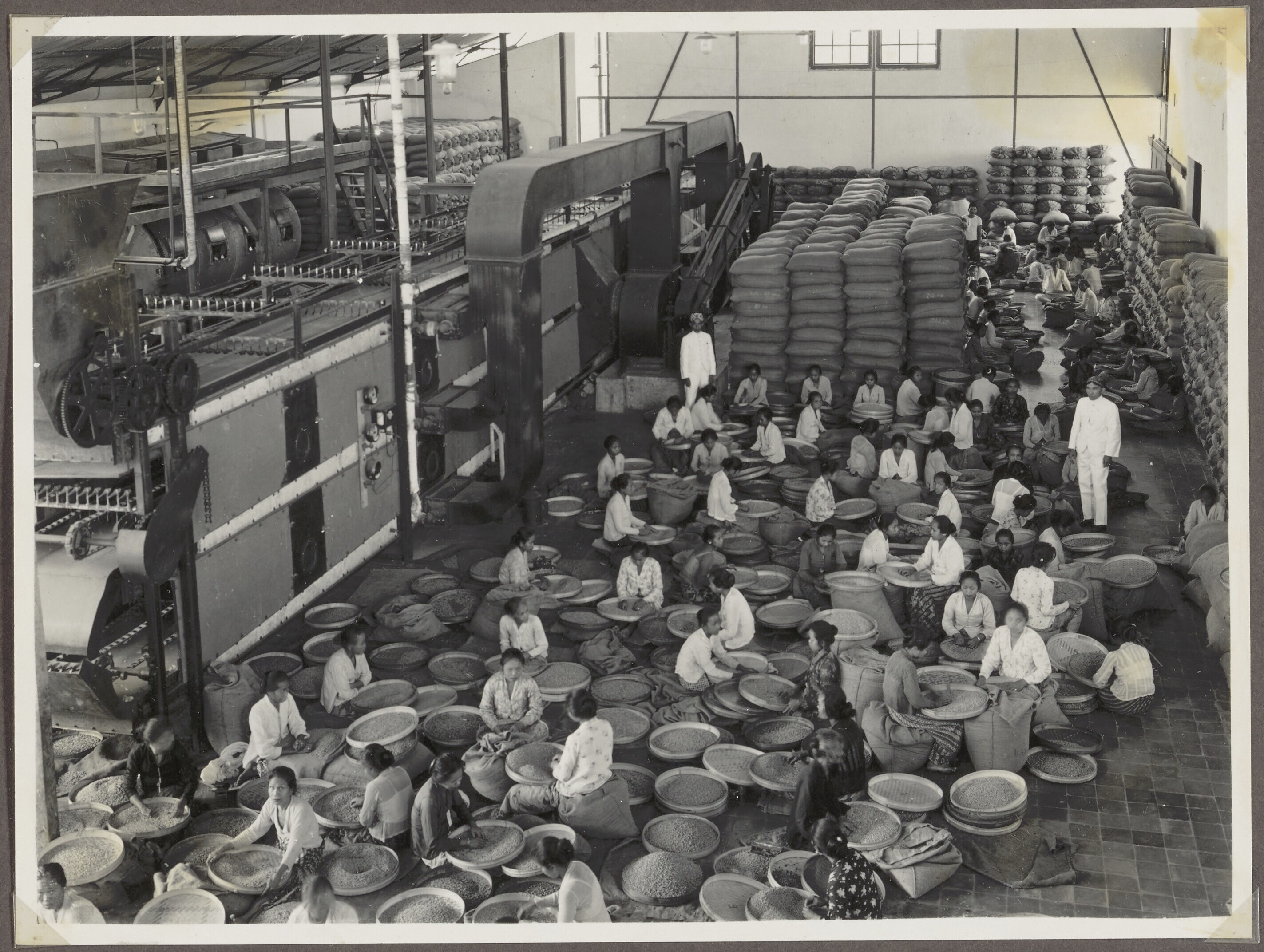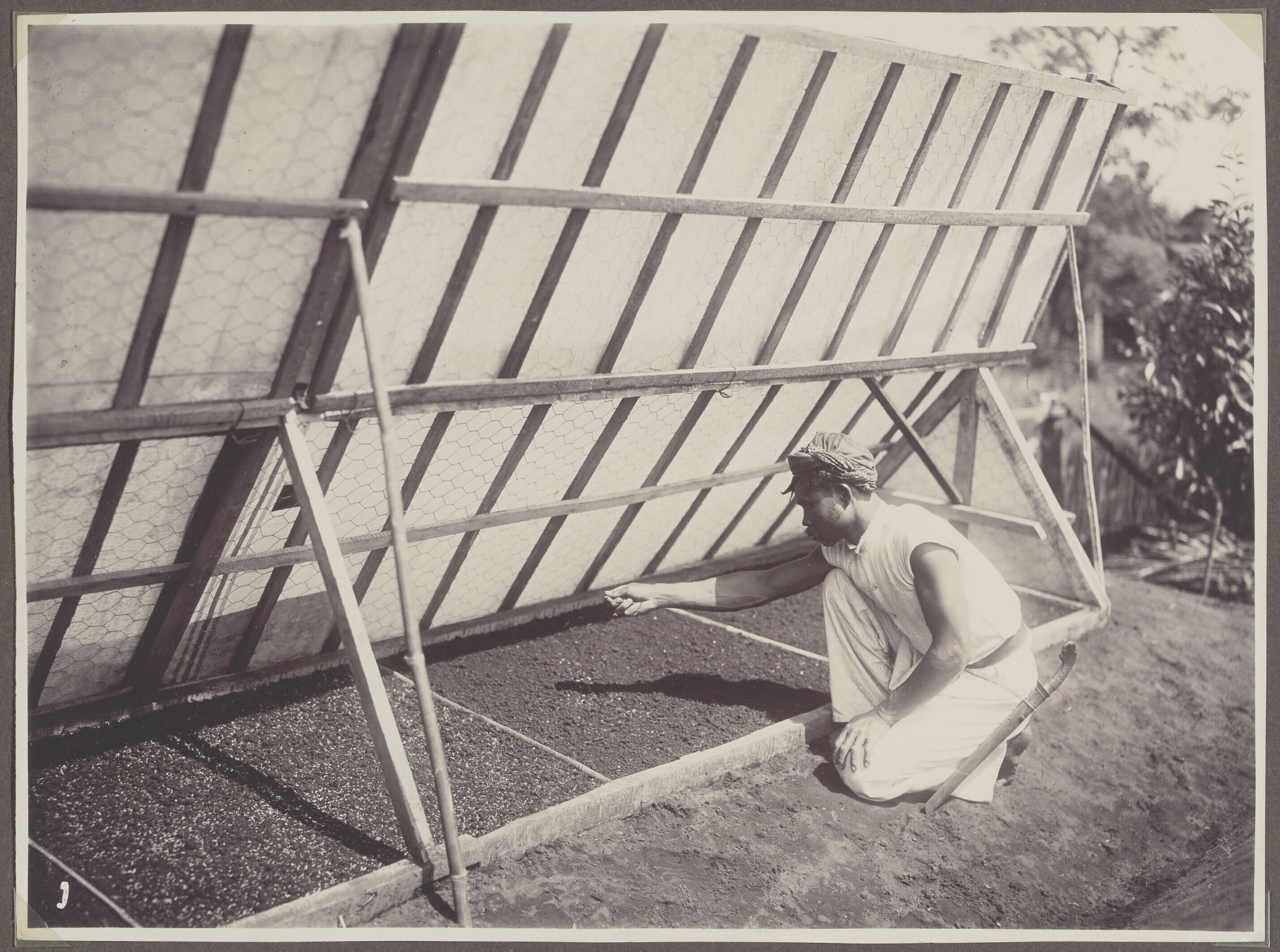 Women sorting cinchona seeds on the Tjinjiroean plan...