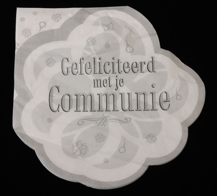Servetje van papier met "Gefeliciteerd met je Communie"