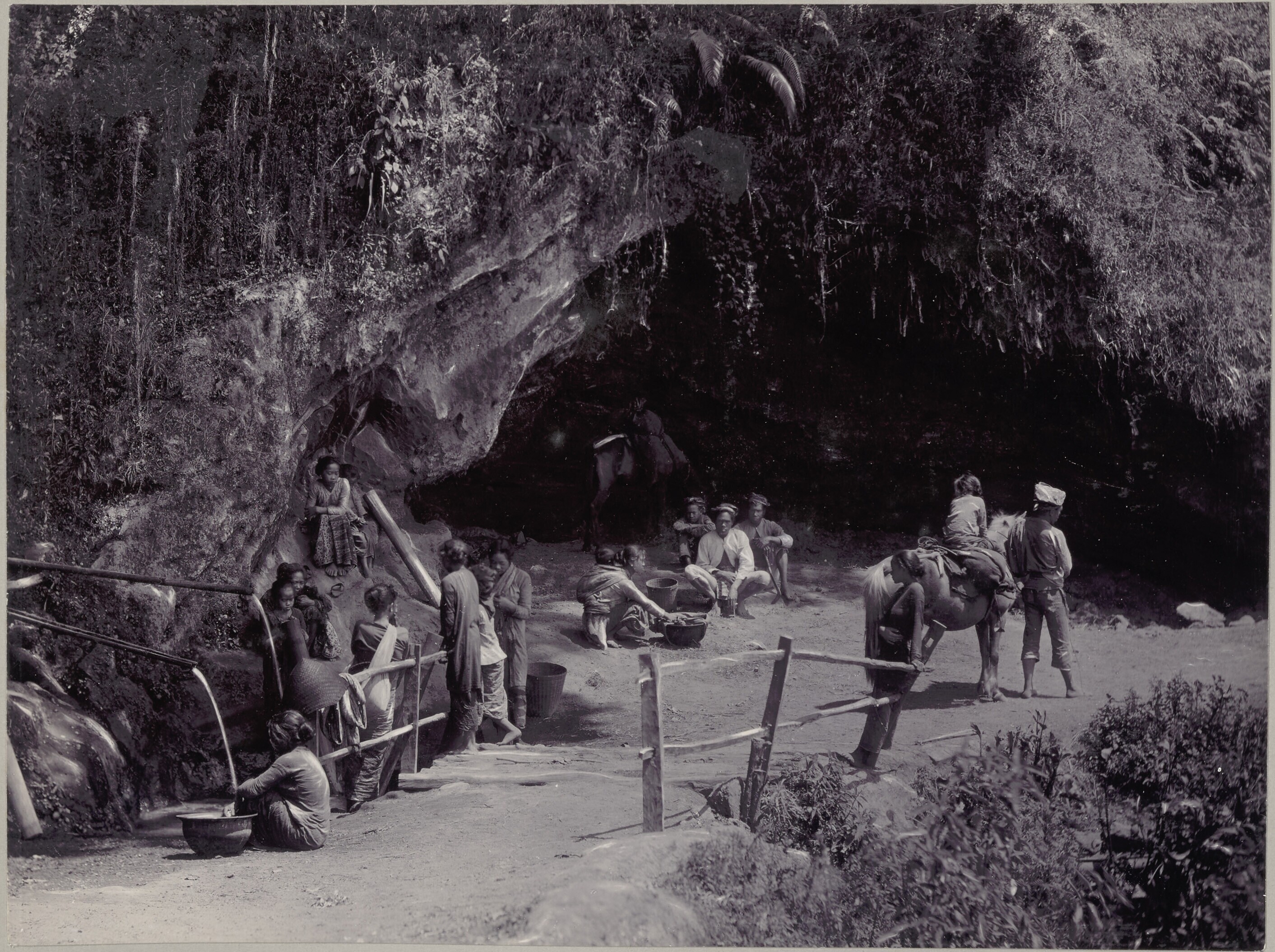 Bedrijvigheid rond een waterput bij een woonhuis in ...