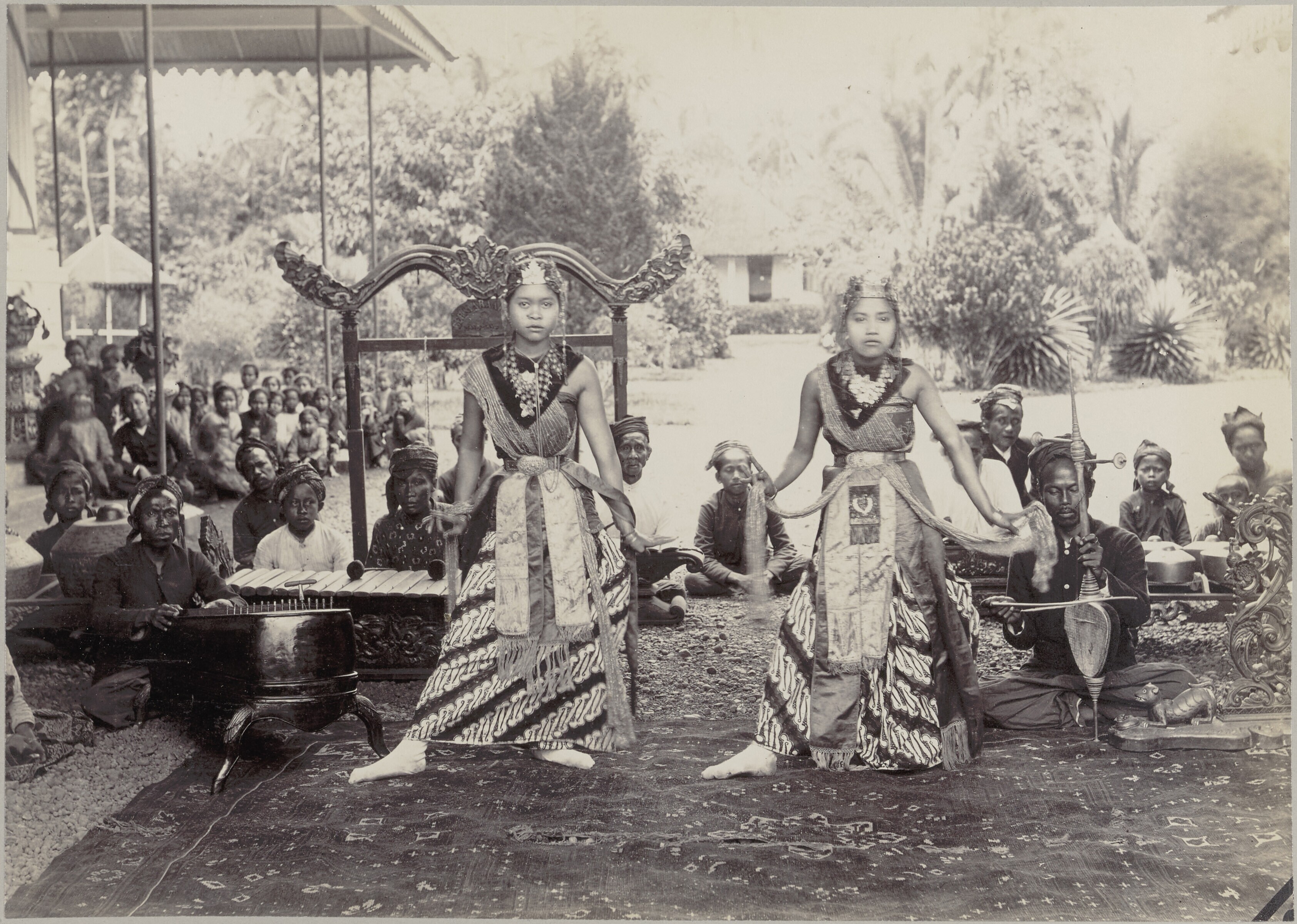 Een ronggeng danseres met muzikanten in Batavia