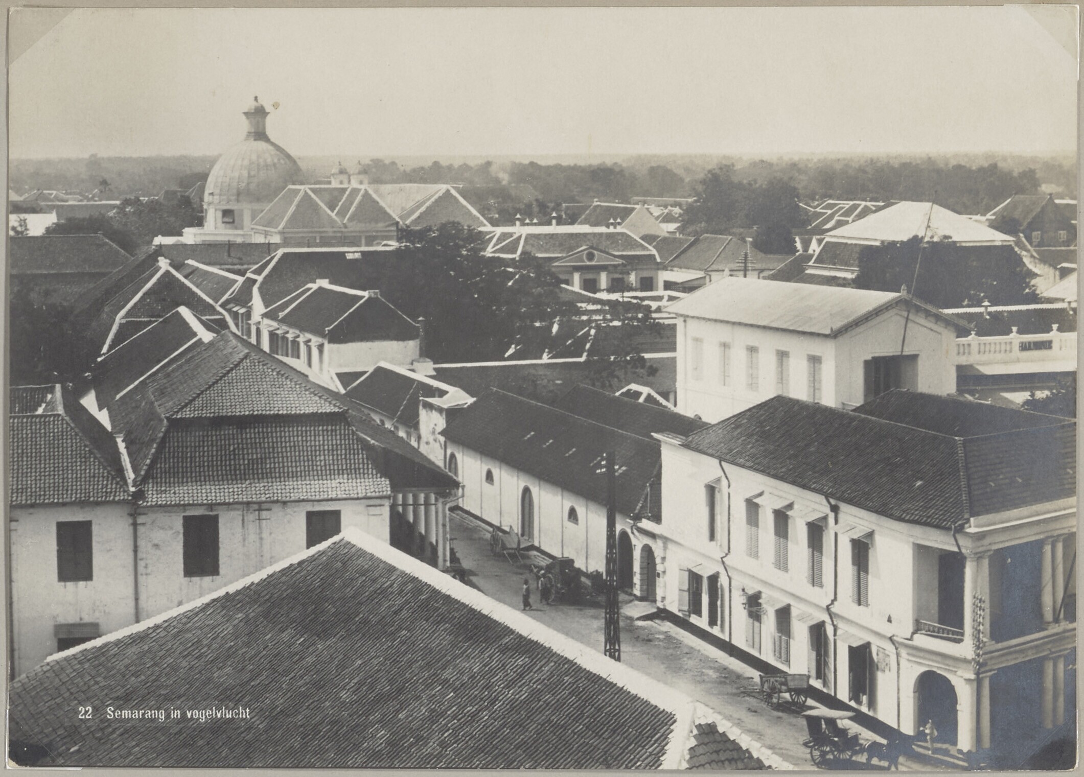 Gezicht over Semarang met onder meer de Koepelkerk e...