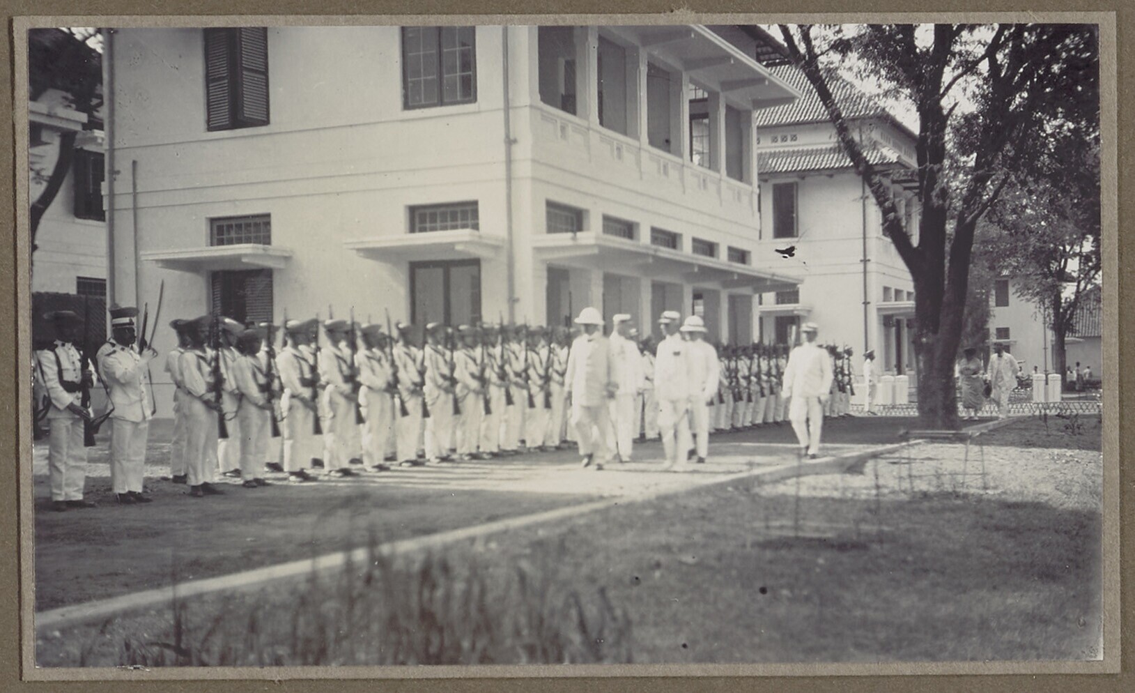 Gouverneur Generaal Fock loopt langs de erewacht in ...