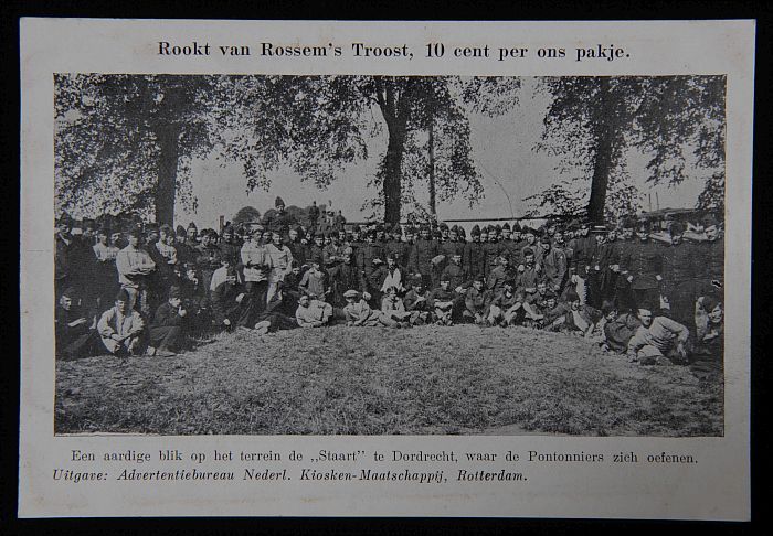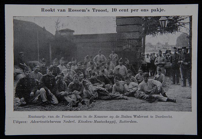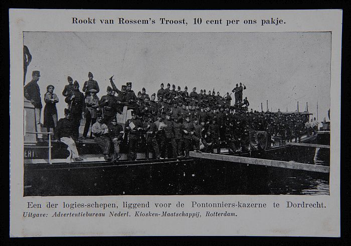 Briefkaart met Pontonniers in Dordrecht en "rookt Va...