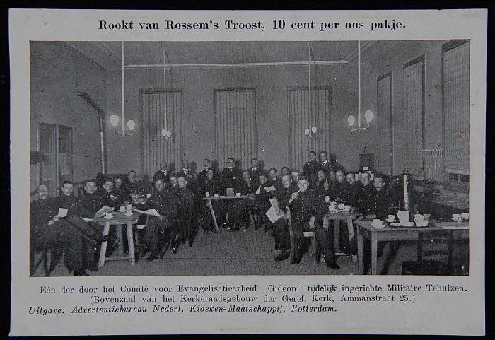 Briefkaart met soldaten in Militair Tehuis in bovenz...