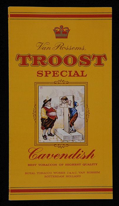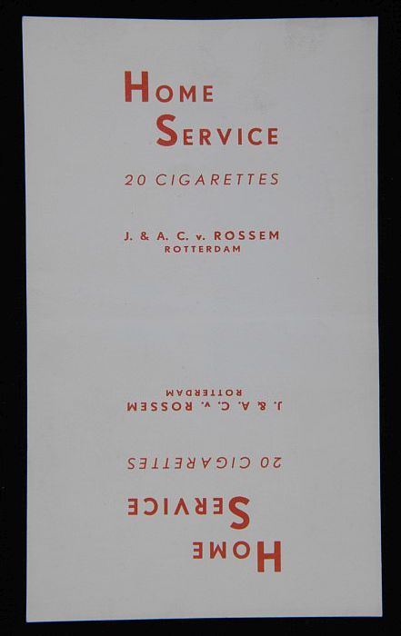 Wikkel Van Rossem met "Home Service 20 cigarettes"