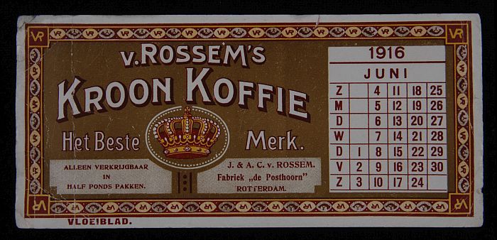Vloeiblad, met kalender juni 1916 en "v. Rossem´s Kr...
