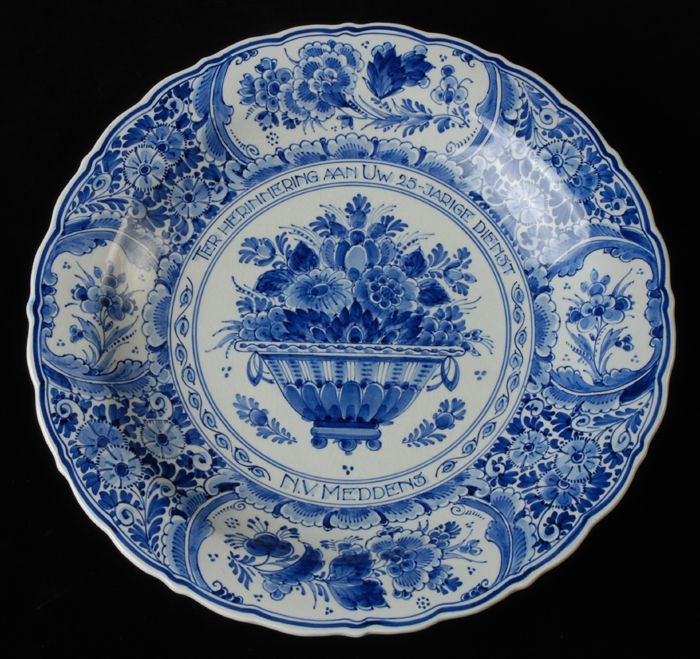 Delfts blauw herdenkingsbord "TER HERINNERING AAN UW...