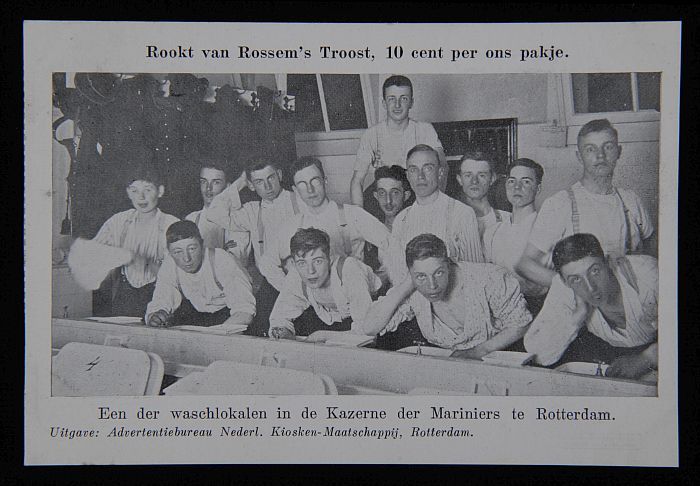 Briefkaart met Mariniers in waslokaal en "rookt Van ...