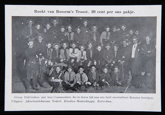 Briefkaart met padvinders en "rookt Van Rossem ´s Tr...