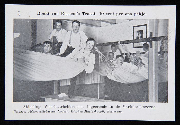 Briefkaart met weerbaarheidscorps logerend in Marine...