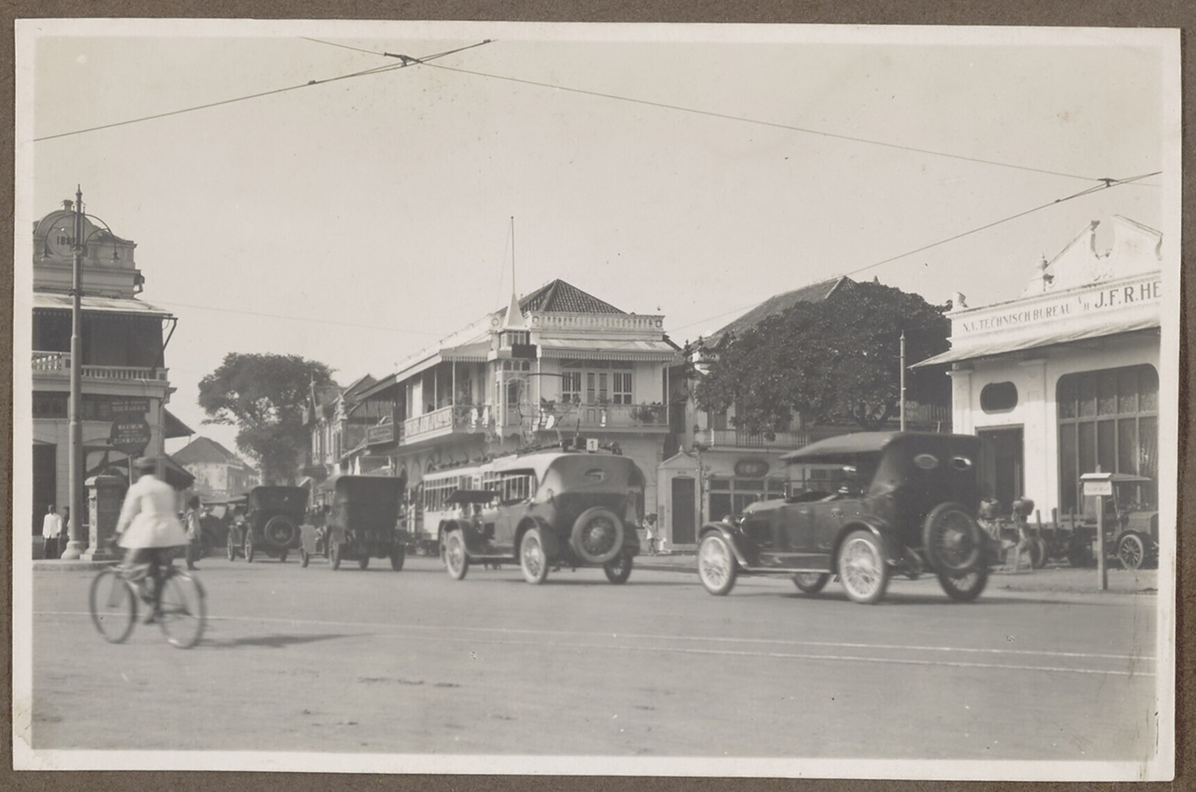 Straatgezicht met trams in Soerabaja