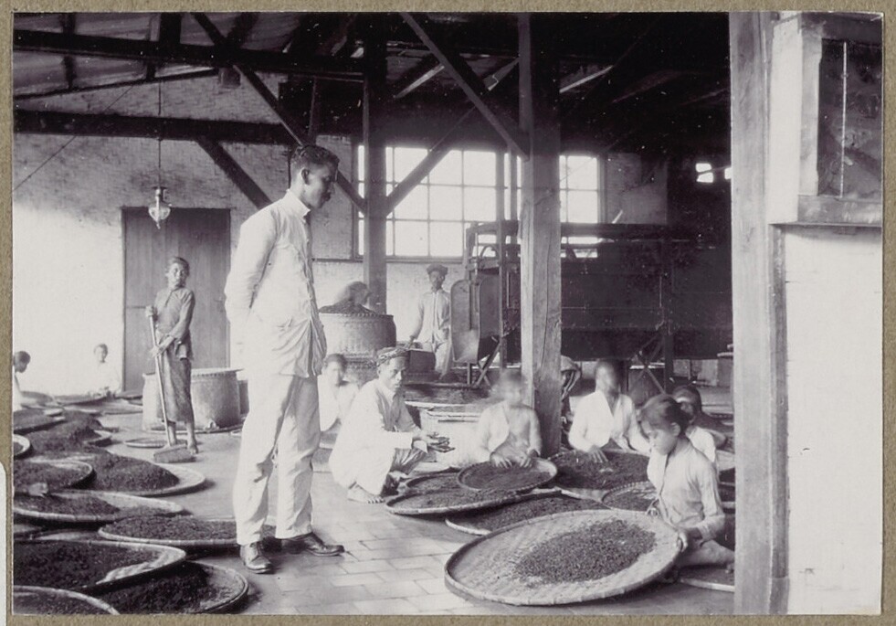 Arbeidster sorteert tabak op lengte en kleur, Java.
