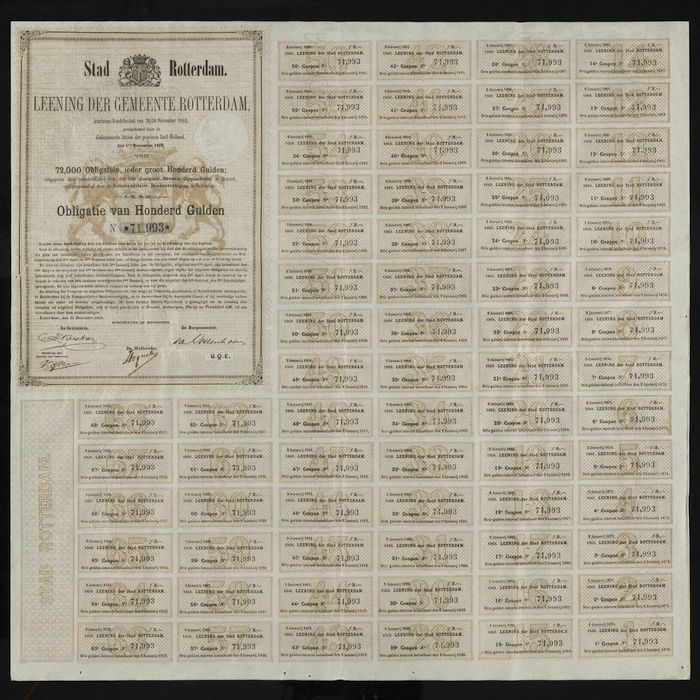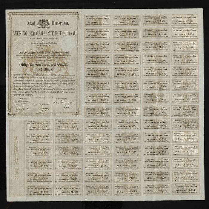 Lening van de gemeente Rotterdam 1868, 72.000 obliga...