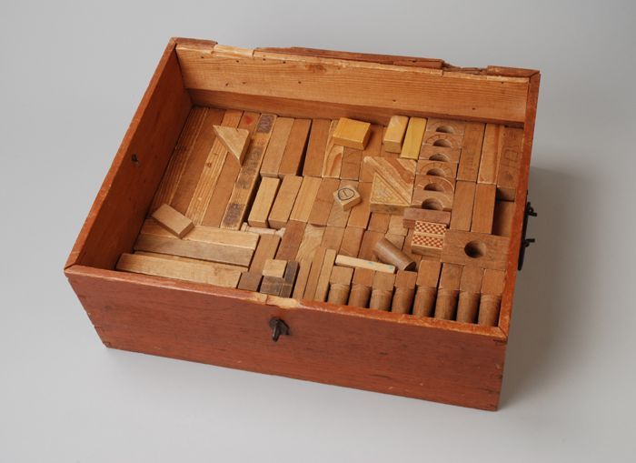 Houten kist met houten blokken in diverse maten