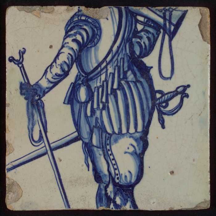 Tegel van tableau met in blauw tors van soldaat