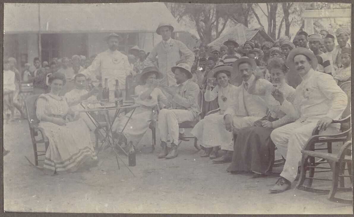 Groepsportret van de deelnemers aan de Duval-tentoon...